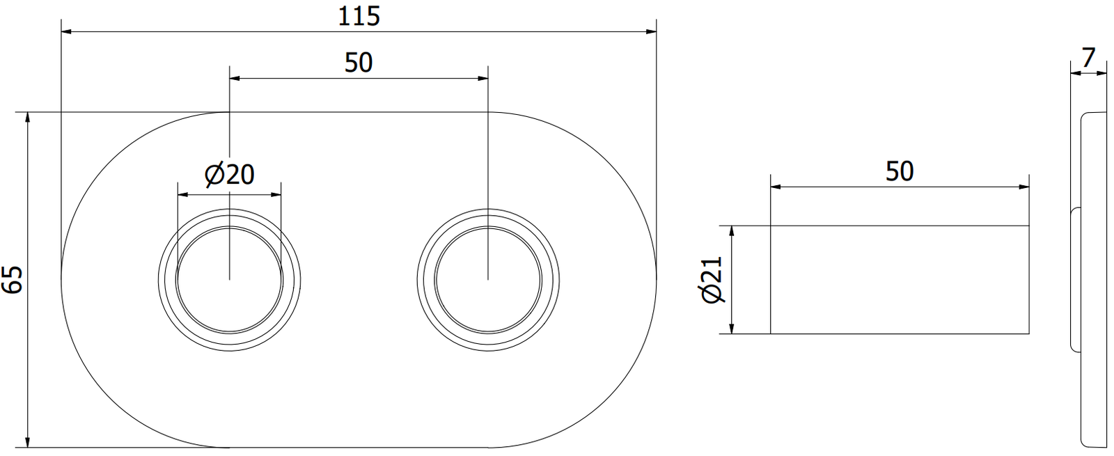 Avstånd mellan hålen för radiatoranslutningarna: 50 mm