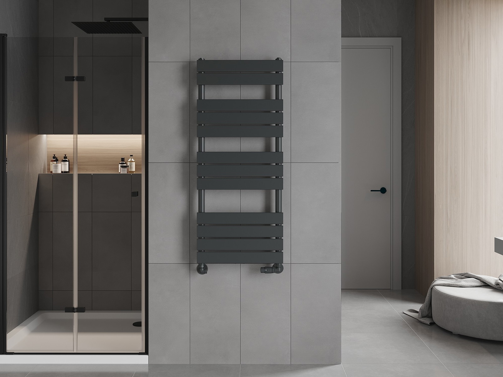 **Mexen Ceres** är en modern badrumsvärmare med måtten 1200 x 500 mm, som erbjuder en värmeeffekt på 610 W. Dess eleganta antracita färg RAL 7016 passar perfekt in i moderna interiörer. Tillverkad av hållbart stål, har den en högkvalitativ lackyta som är korrosionsbeständig. Tack vare möjligheten att montera en värmare och olika anslutningsalternativ, erbjuder den universella installationsmöjligheter. Dessutom ingår nödvändiga installationsaccessoarer. Det perfekta valet för dem som värdesätter funktionalitet och stil.