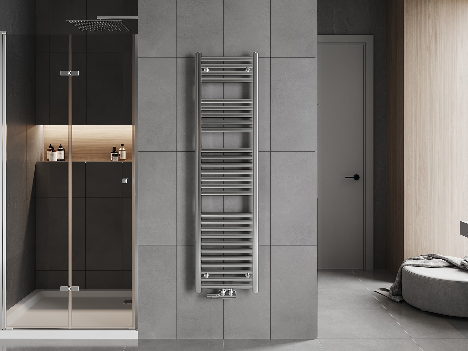 Badrumssradiatorn Mexen Hades är en utmärkt lösning för varje badrum och erbjuder effektiv uppvärmning med en effekt på 461 W. Dess dimensioner 1500 x 400 mm och kompakta djup på 30 mm gör att den passar perfekt i olika interiörer. Tillverkad av stål i en elegant kromfinish, är den korrosionsbeständig tack vare en hållbar lackbeläggning. Möjlighet till nedre eller central anslutning samt installation av ett värmeelement ökar dess funktionalitet. Alla nödvändiga monteringstillbehör ingår, vilket underlättar installationen. Med Mexen Hades blir varje badrum inte bara varmt utan också stilfullt.