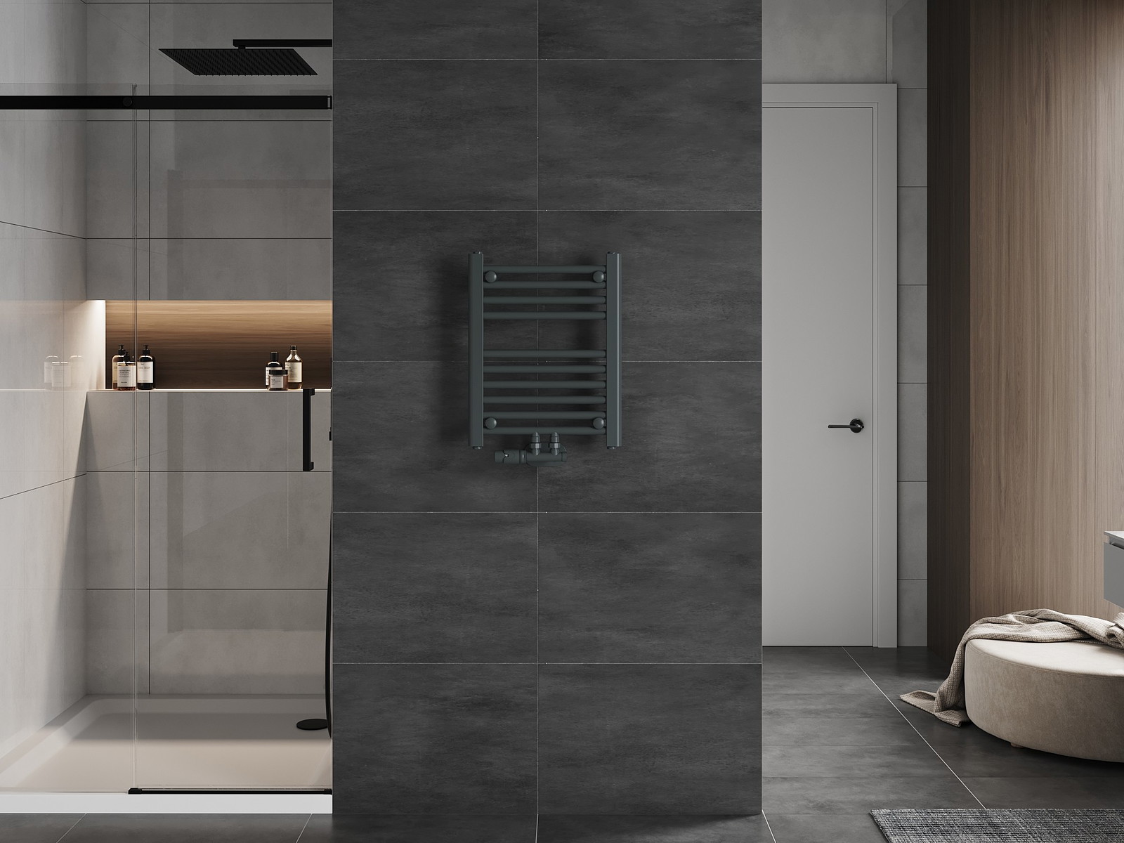 Mexen Mars är en modern badrumradiator med kompakta mått på 500 x 400 mm, som erbjuder en värmeeffekt på 178 W. Tack vare sin konstruktion av högkvalitativt stål och antracitfinish färg RAL 7016, är radiatorn hållbar och korrosionsbeständig. Den är lätt att montera tack vare medföljande upphängningar och monteringssats. Den har olika anslutningsmöjligheter - 2xG ½″ centrala och 4xG ½″ uppifrån och ner, vilket ger installationsflexibilitet. En ytterligare fördel är möjligheten att montera en värmespiral. Produkten har en maximal arbetstemperatur på upp till 95 °C och brandmotstånd i klass A1.