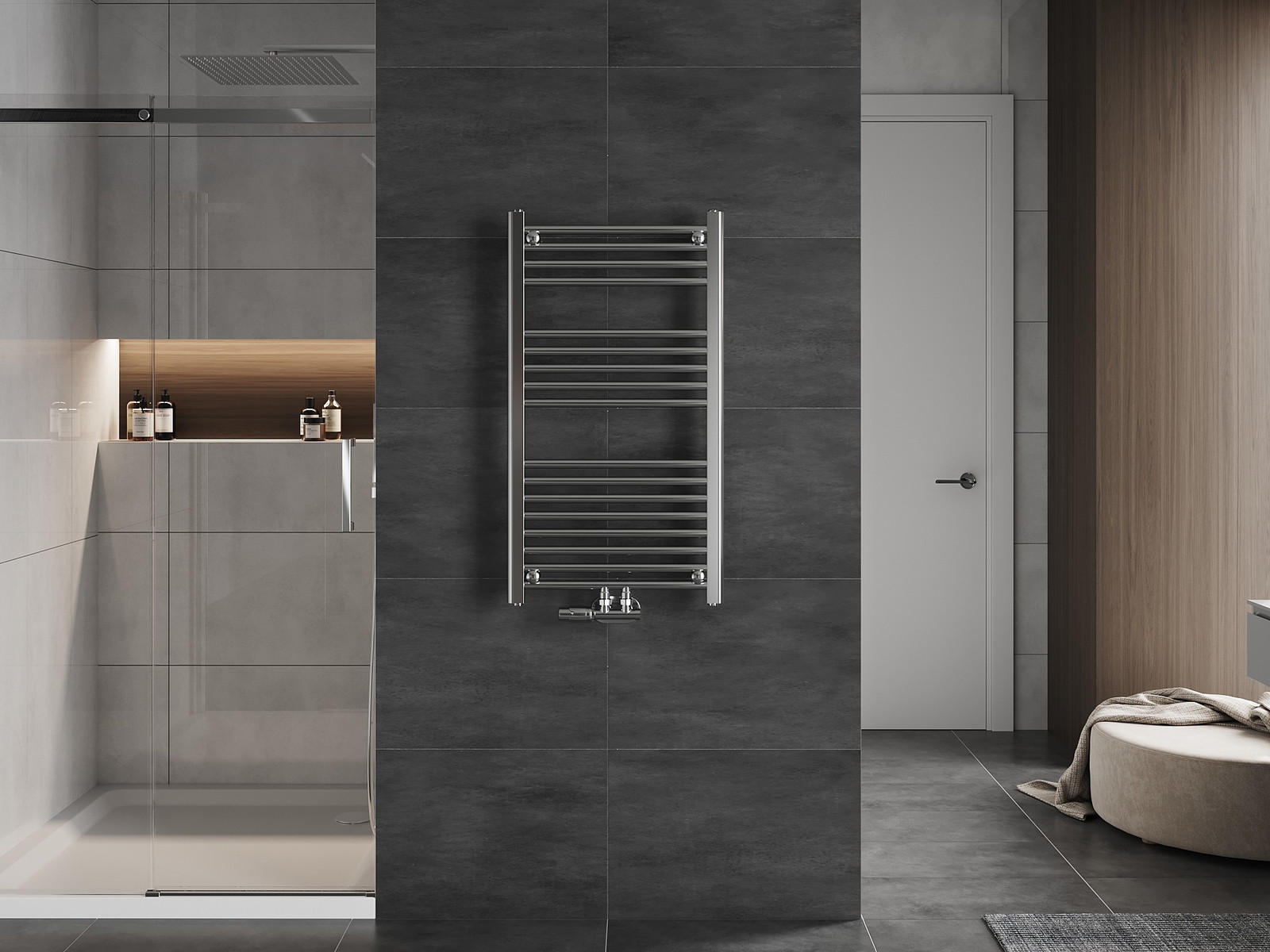 Mexen Mars är en elegant badrumssradiator med måtten 900 x 500 mm och en effekt på 292 W, som smidigt passar in i varje badrum tack vare sin stilfulla kromfinish. Tillverkad av högkvalitativt stål, väger 5,94 kg och är korrosionsbeständig tack vare en hållbar lackfärgyta. Fungerar vid en maximal temperatur av 95 °C och ett arbetstryck på upp till 0,6 Mpa. Erbjuder flexibla anslutningsmöjligheter och möjlighet att montera en värmare, vilket gör den till ett praktiskt och funktionellt val för krävande användare. Setet inkluderar fästen, monteringssats, tätningsproppar och luftventil.