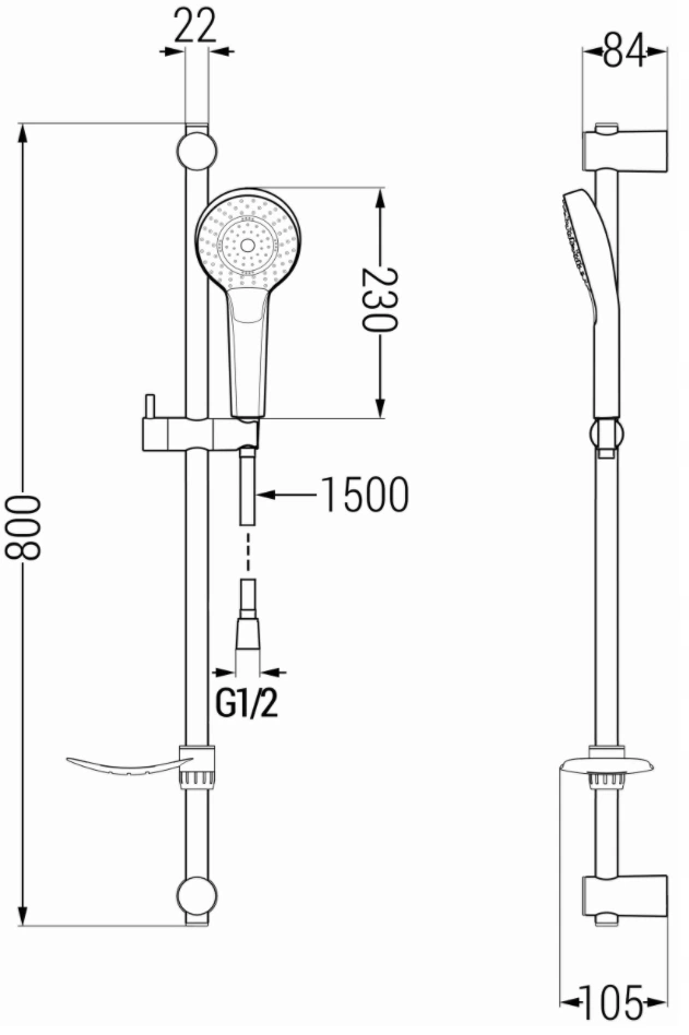Bredd av stång: 22 mm