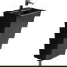 Tvättstället har ett hål där vi kan montera en kran. Detta sparar värdefull plats i badrummet och framhäver dess estetik. Denna lösning möjliggör även enklare rengöring runt tvättstället.