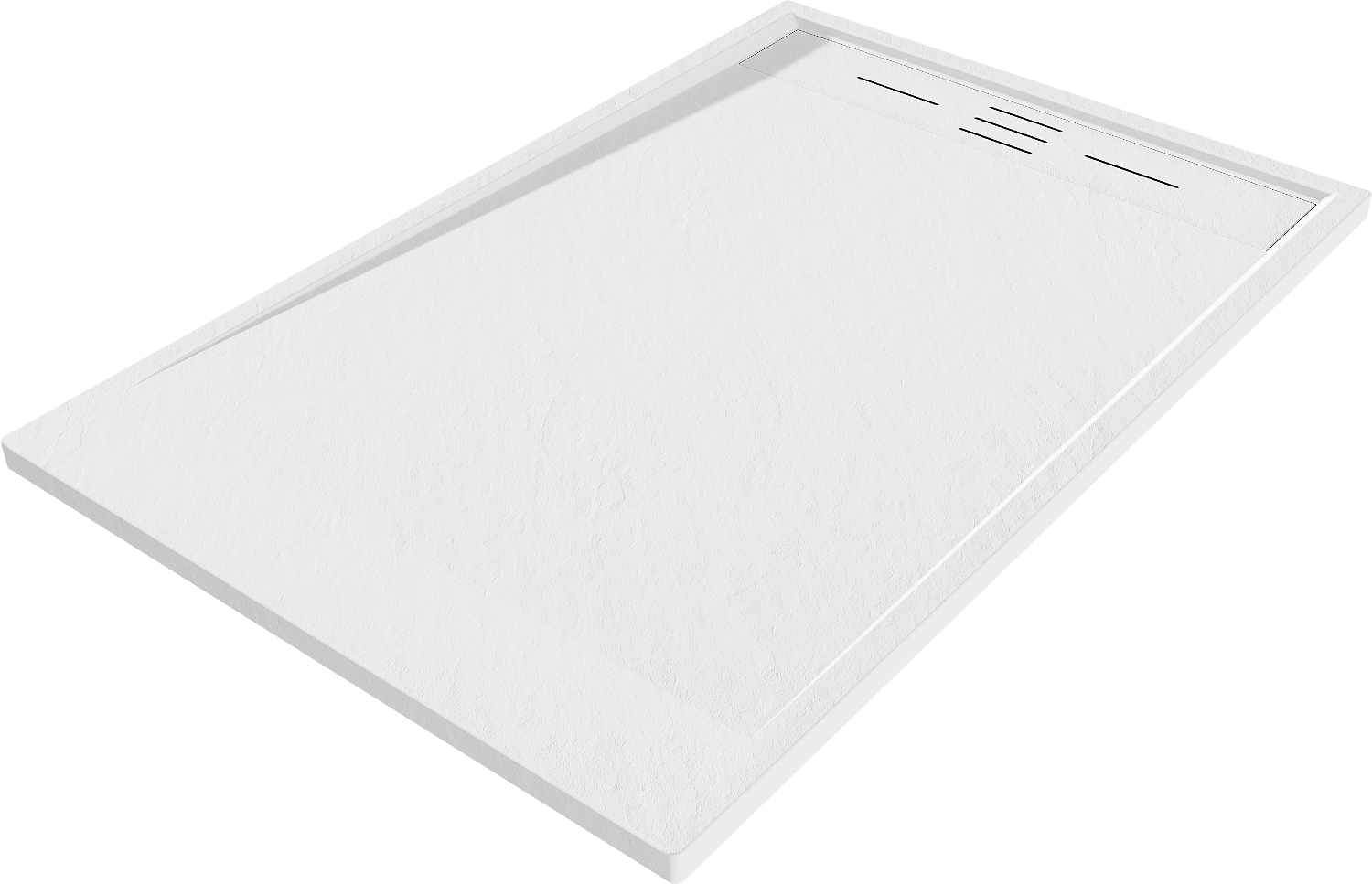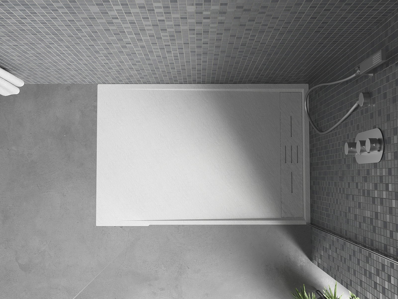 Ytan på duschbrickan påminner om sten i sin struktur. Den utgör en unik kombination av naturligt utseende med modern inredning. Den tillför karaktär, framhäver estetik och elegans i badrummets inredning och fascinerar med sin form.