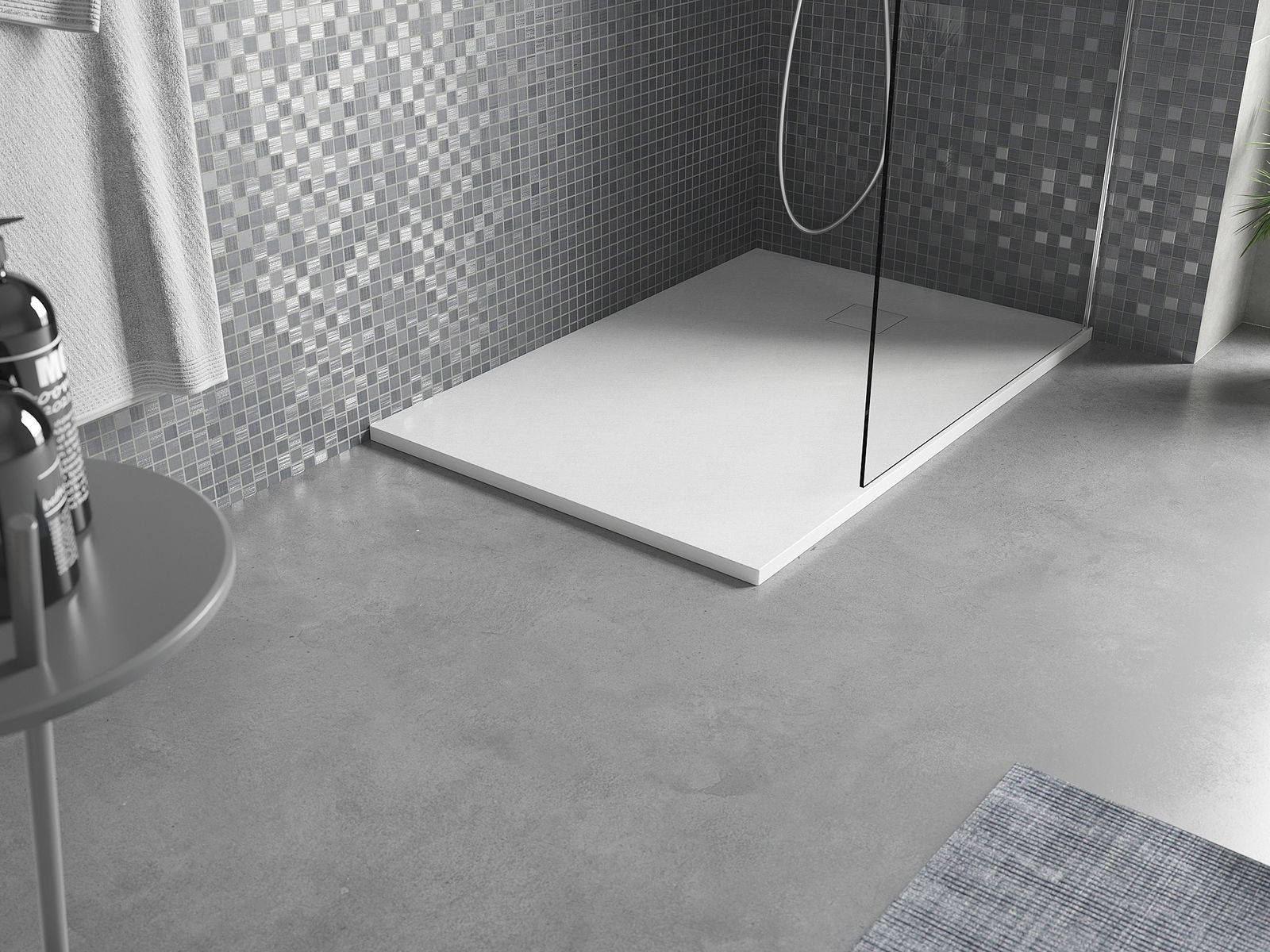 Ytan på duschbrickan påminner om sten i sin struktur. Den utgör en unik kombination av naturligt utseende med modern inredning. Den tillför karaktär, framhäver estetik och elegans i badrummets inredning och fascinerar med sin form.