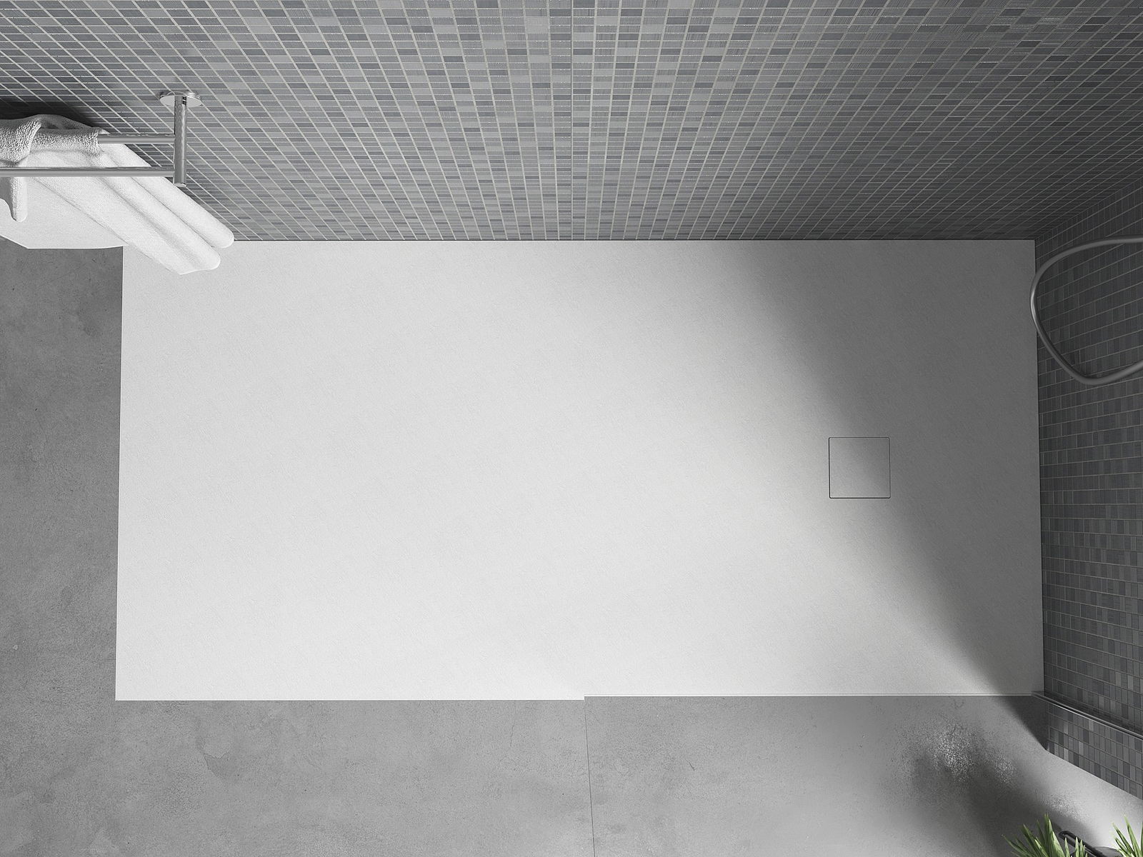 Ytan på duschbrickan påminner om sten i sin struktur. Den utgör en unik kombination av naturligt utseende med modern inredning. Den tillför karaktär, framhäver estetik och elegans i badrummets inredning och fascinerar med sin form.