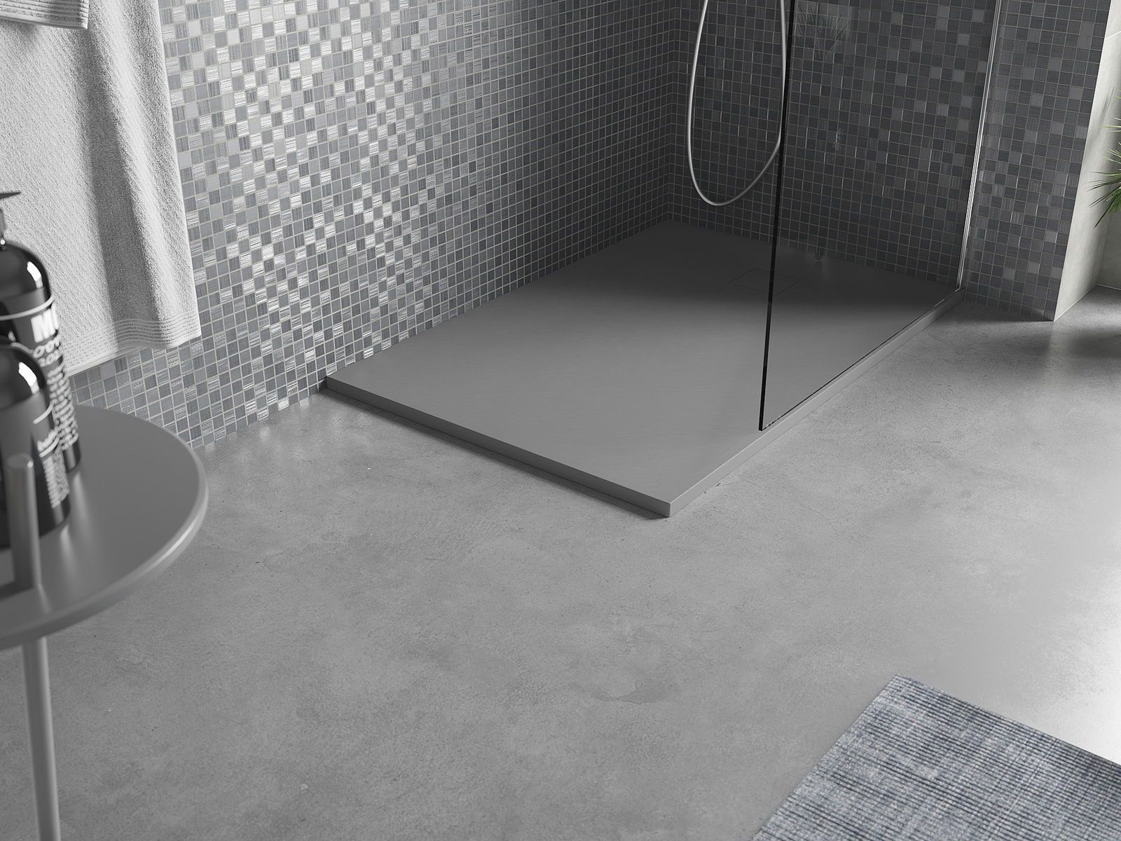 Ytan på duschbrickan påminner om sten i sin struktur. Den utgör en unik kombination av naturligt utseende med modern inredning. Den tillför karaktär, framhäver estetik och elegans i badrummets inredning och fascinerar med sin form.