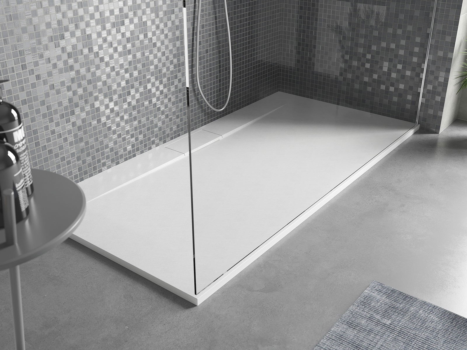 Ytan på duschbrickan påminner om sten i sin struktur. Den utgör en unik kombination av naturligt utseende med modern inredning. Den tillför karaktär, framhäver estetik och elegans i badrummets inredning och fascinerar med sin form.