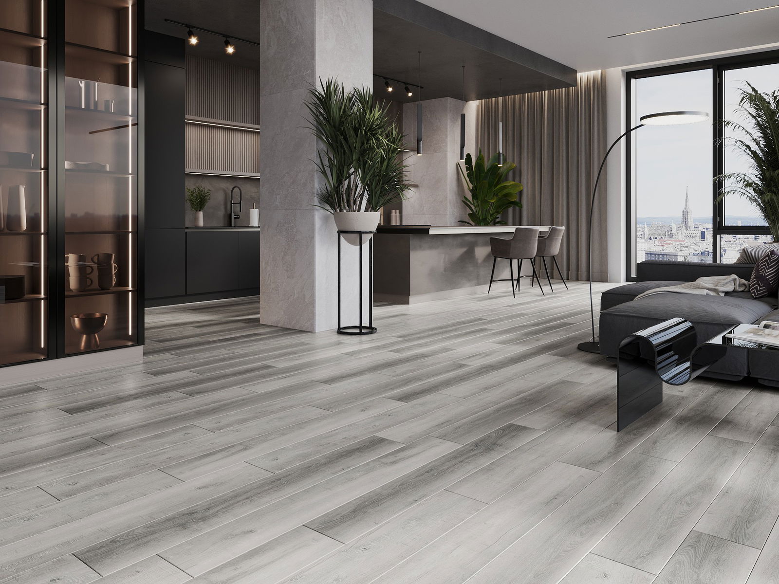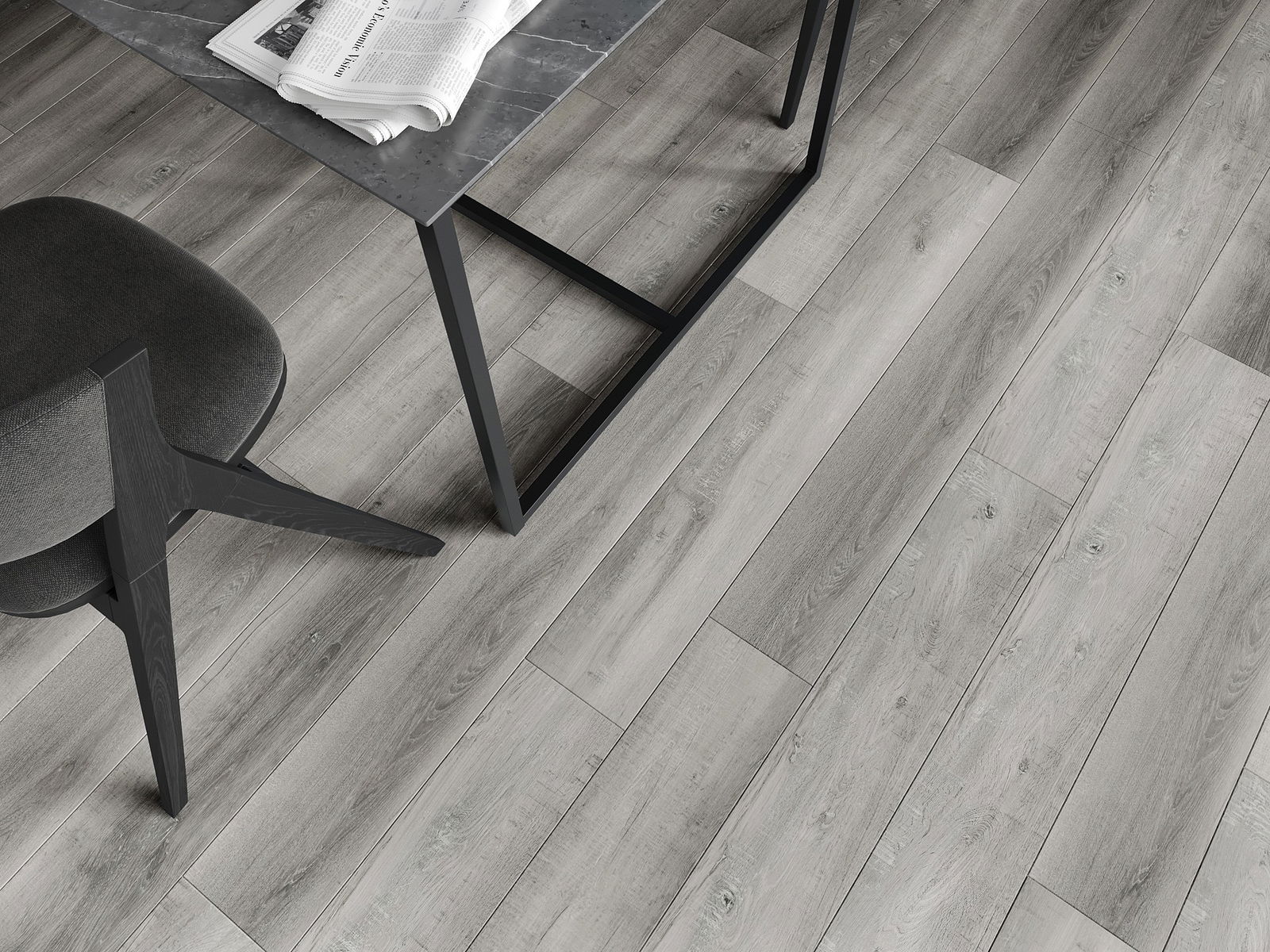 Panelerna har en 4-sidig fog - varje sida har frästs på ett sådant sätt att en V-formad fog skapas när de läggs. Denna design gör att golvet får en tydligare struktur, vilket ger det djup och estetisk karaktär. Denna effekt är särskilt uppskattad i moderna inredningar, där detaljerna betonar interiörens unika utseende.
