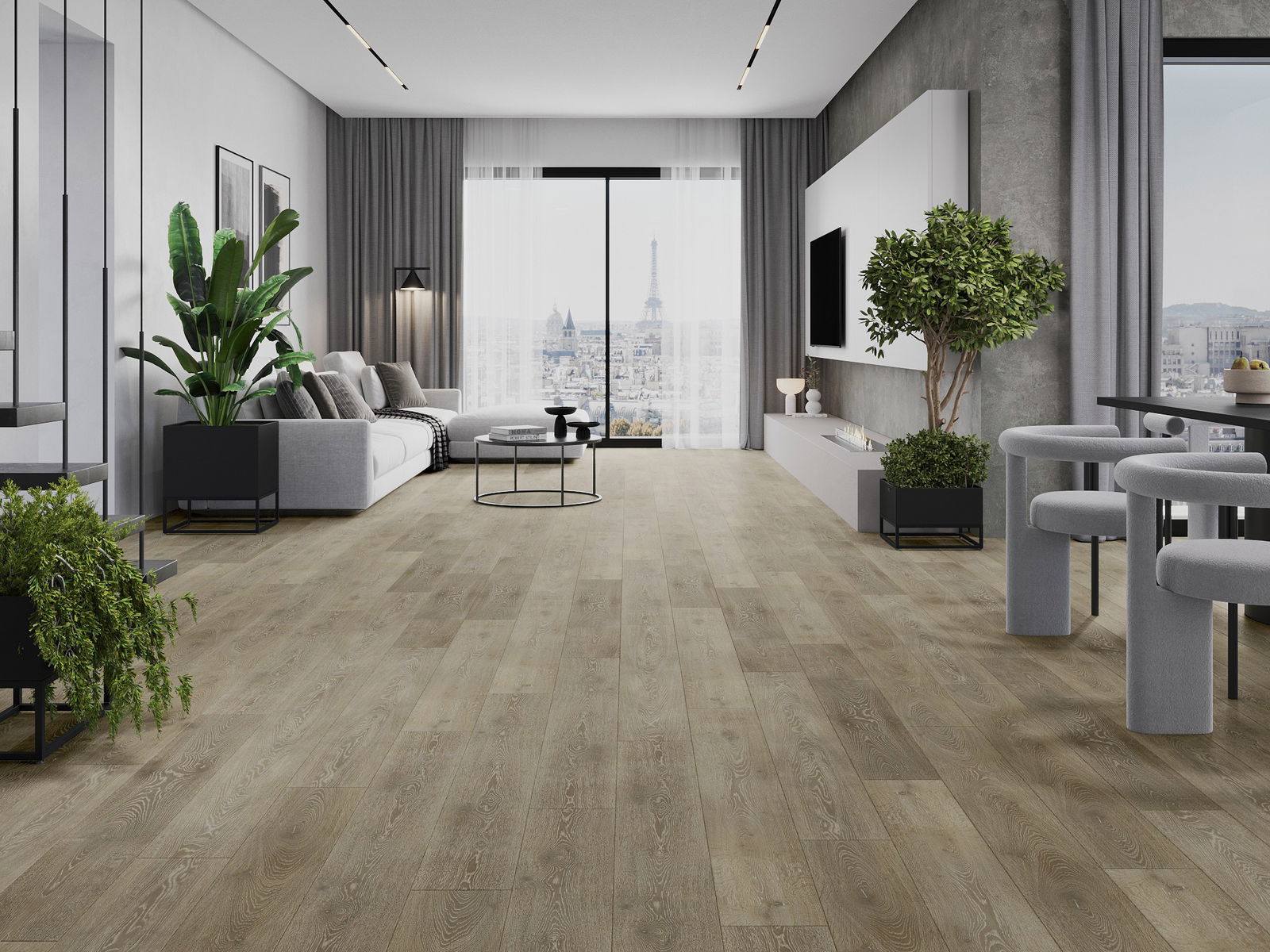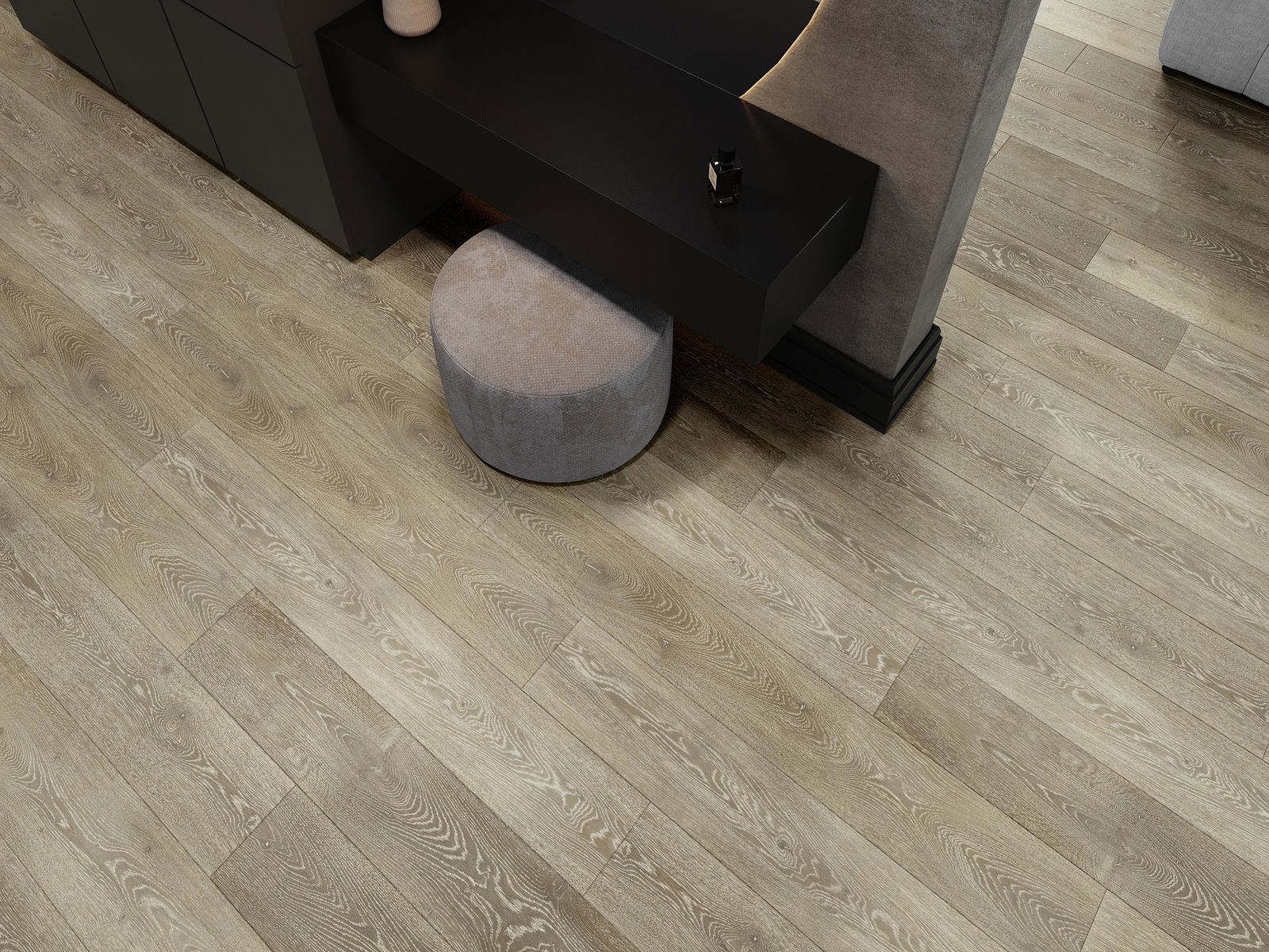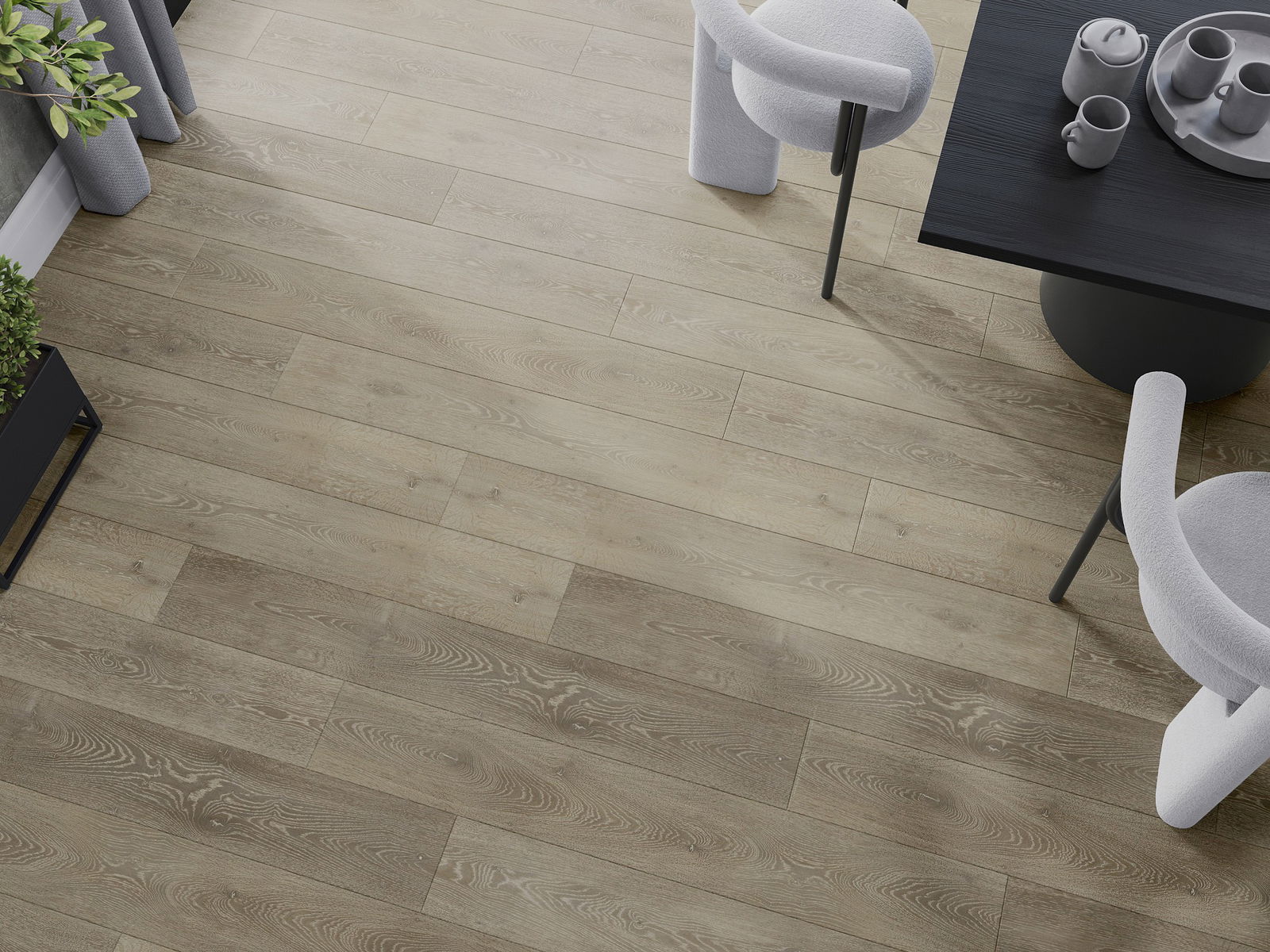 Panelerna har en 4-sidig fog - varje sida har frästs på ett sådant sätt att en V-formad fog skapas när de läggs. Denna design gör att golvet får en tydligare struktur, vilket ger det djup och estetisk karaktär. Denna effekt är särskilt uppskattad i moderna inredningar, där detaljerna betonar interiörens unika utseende.