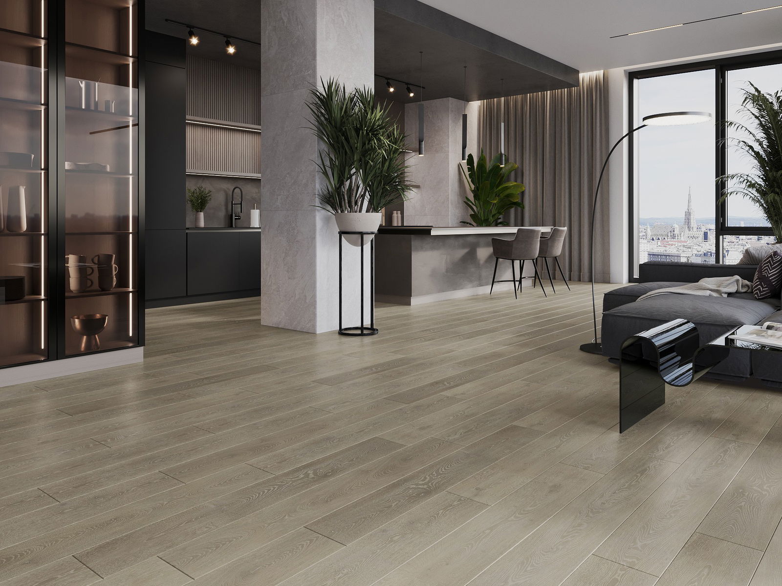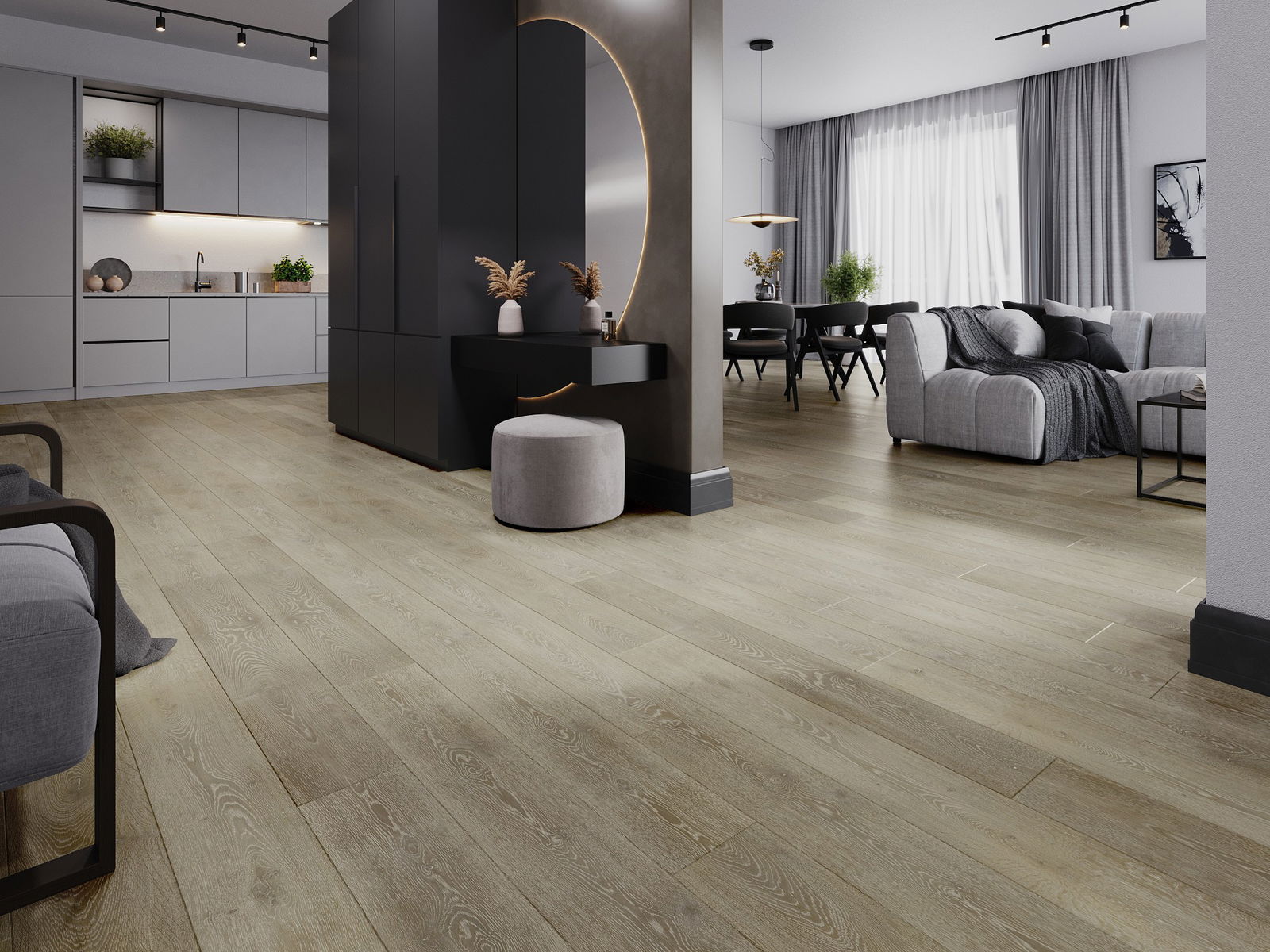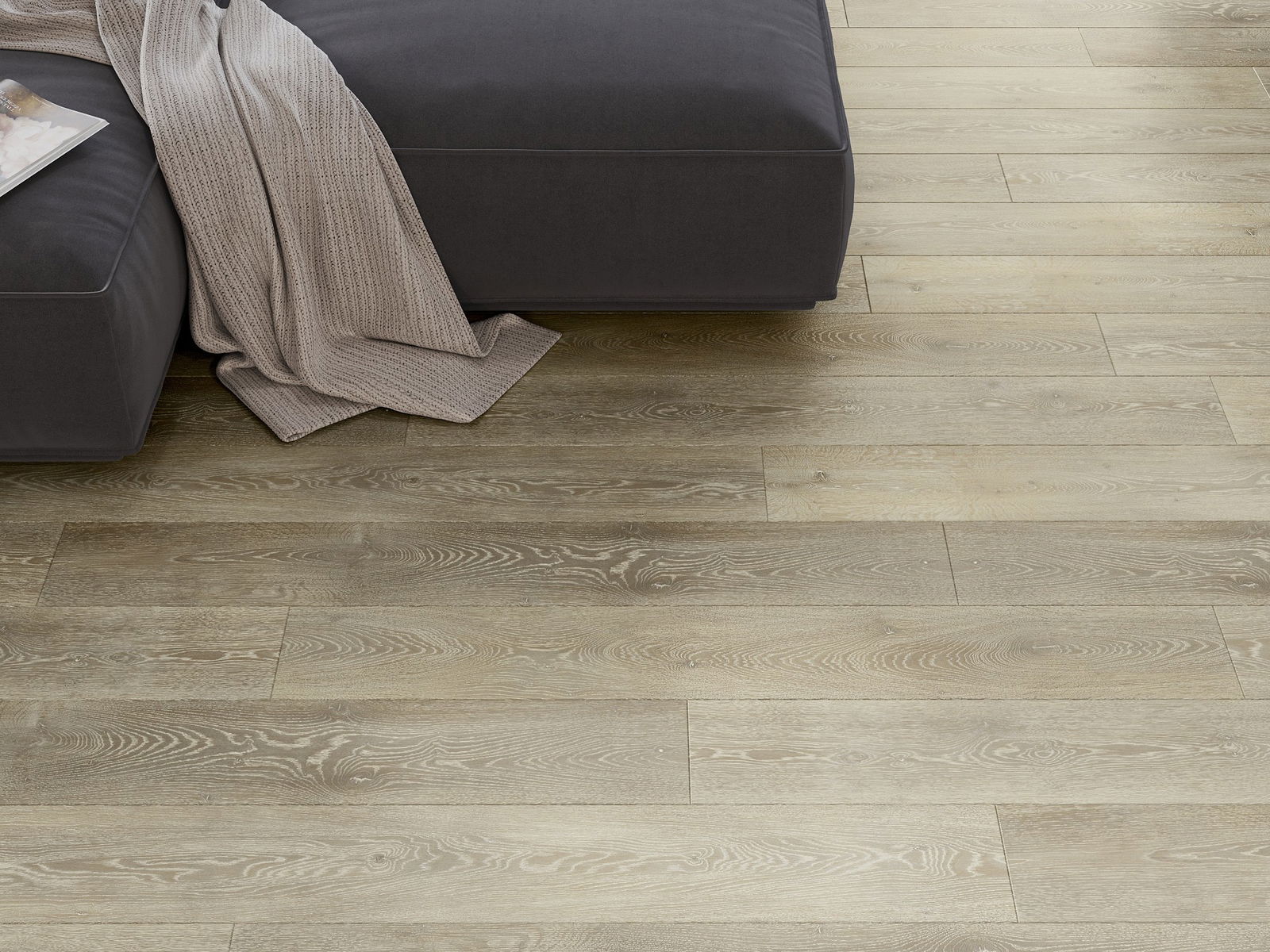Panelerna har en 4-sidig fog - varje sida har frästs på ett sådant sätt att en V-formad fog skapas när de läggs. Denna design gör att golvet får en tydligare struktur, vilket ger det djup och estetisk karaktär. Denna effekt är särskilt uppskattad i moderna inredningar, där detaljerna betonar interiörens unika utseende.