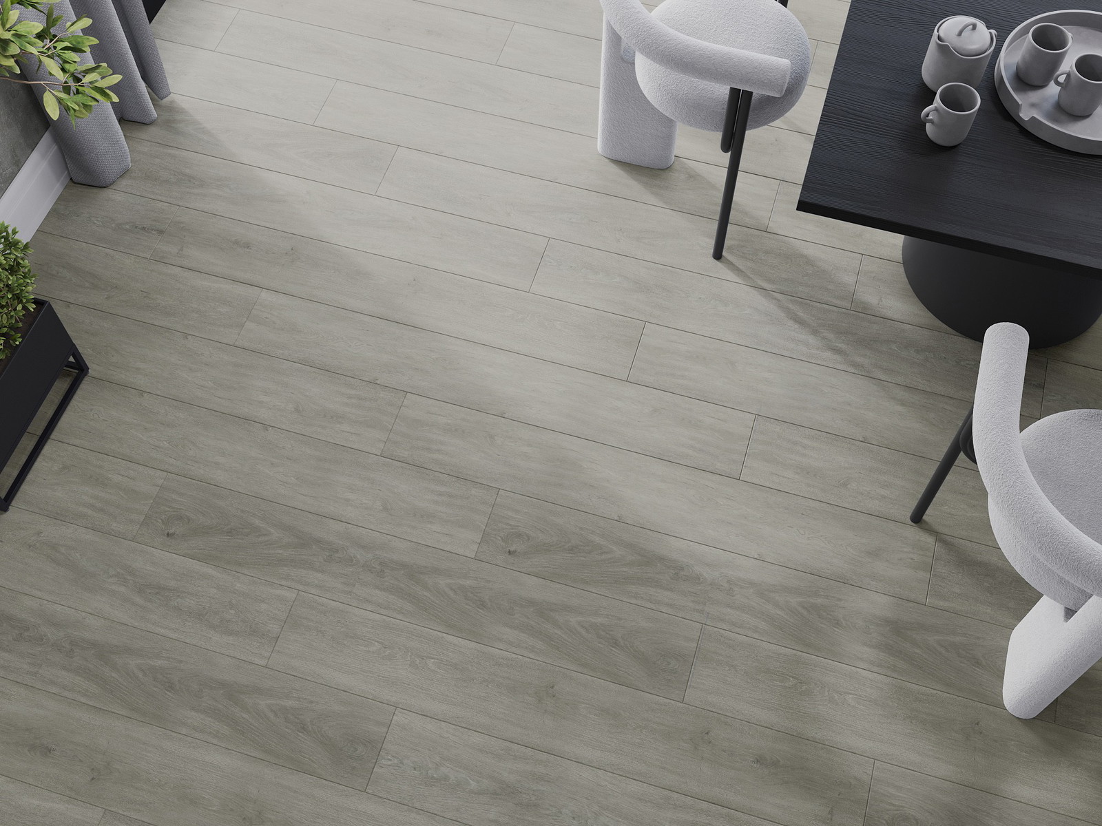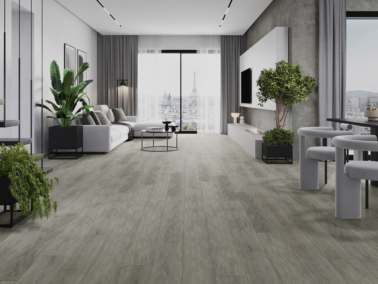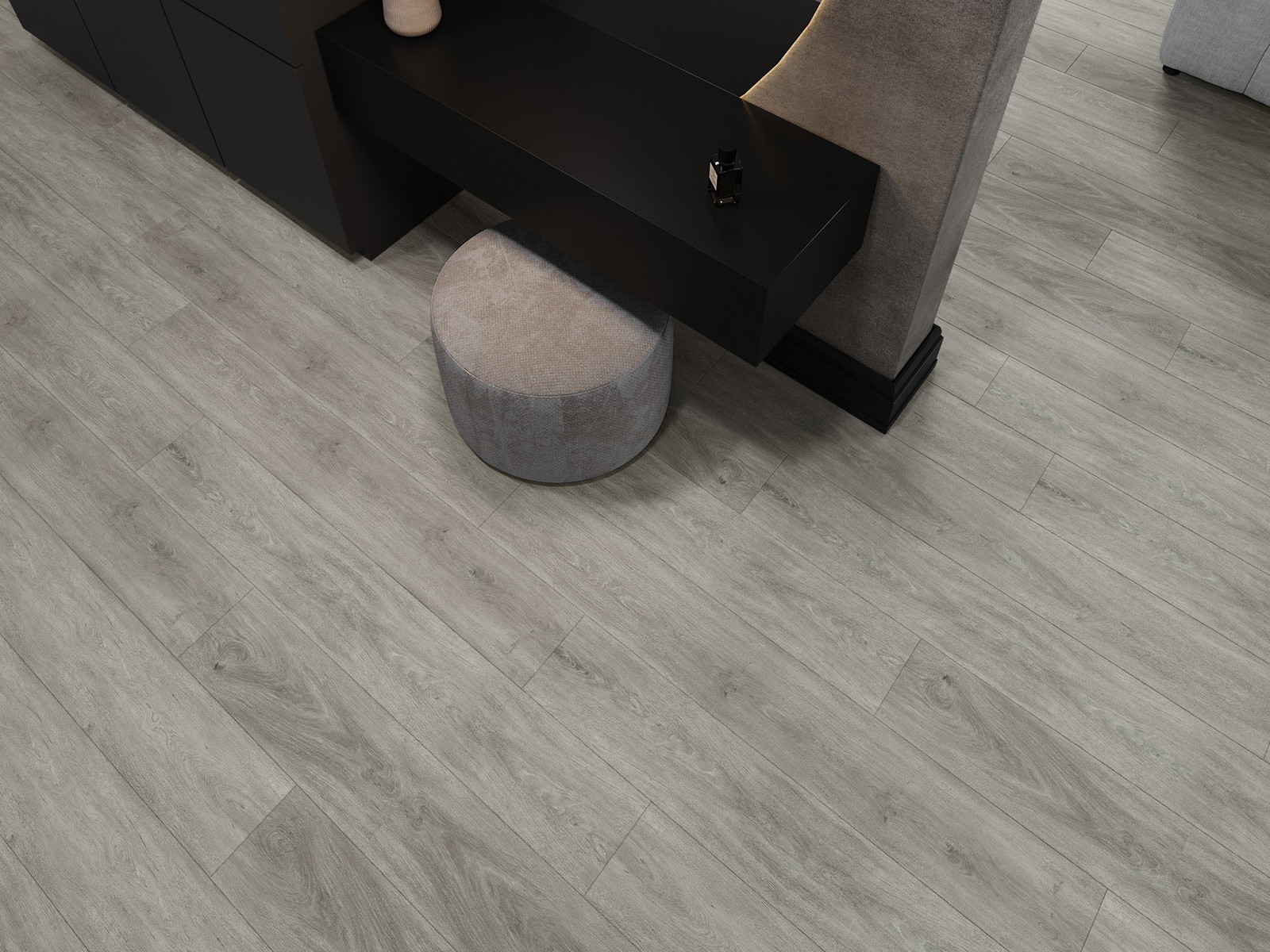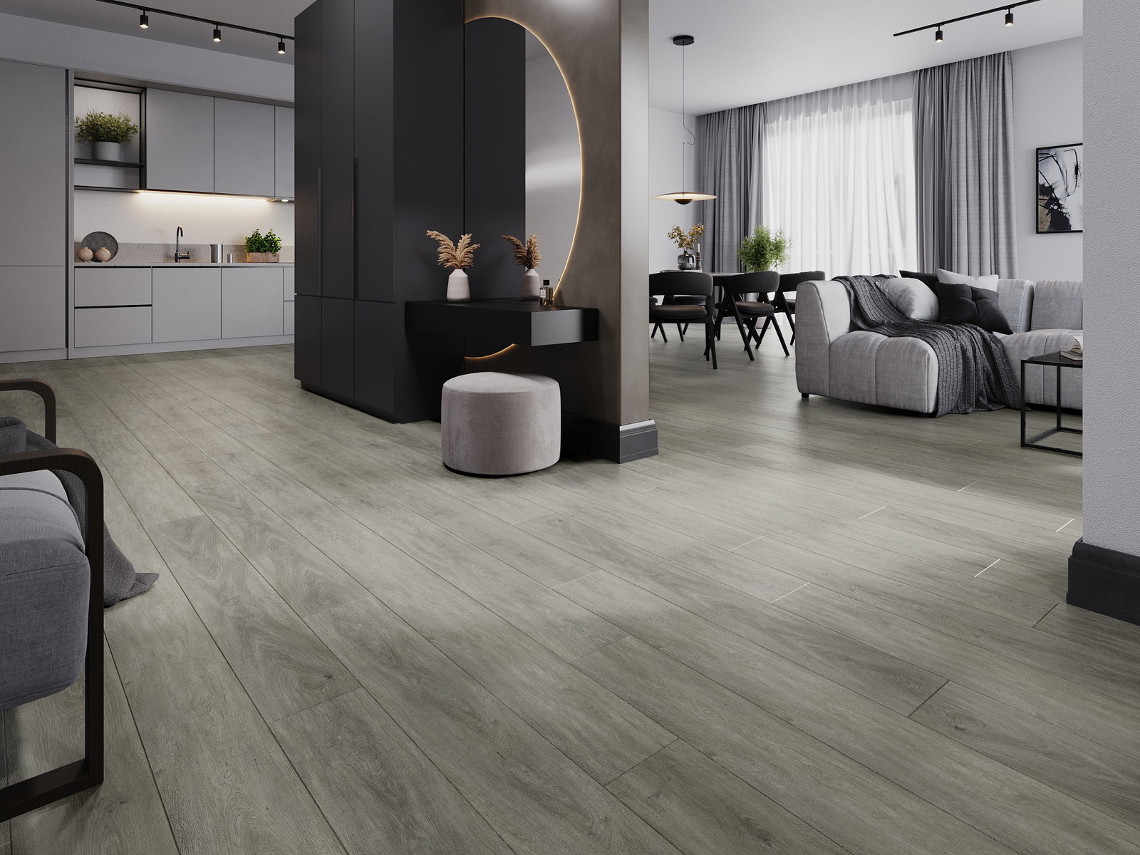 Panelerna har en 4-sidig fog - varje sida har frästs på ett sådant sätt att en V-formad fog skapas när de läggs. Denna design gör att golvet får en tydligare struktur, vilket ger det djup och estetisk karaktär. Denna effekt är särskilt uppskattad i moderna inredningar, där detaljerna betonar interiörens unika utseende.