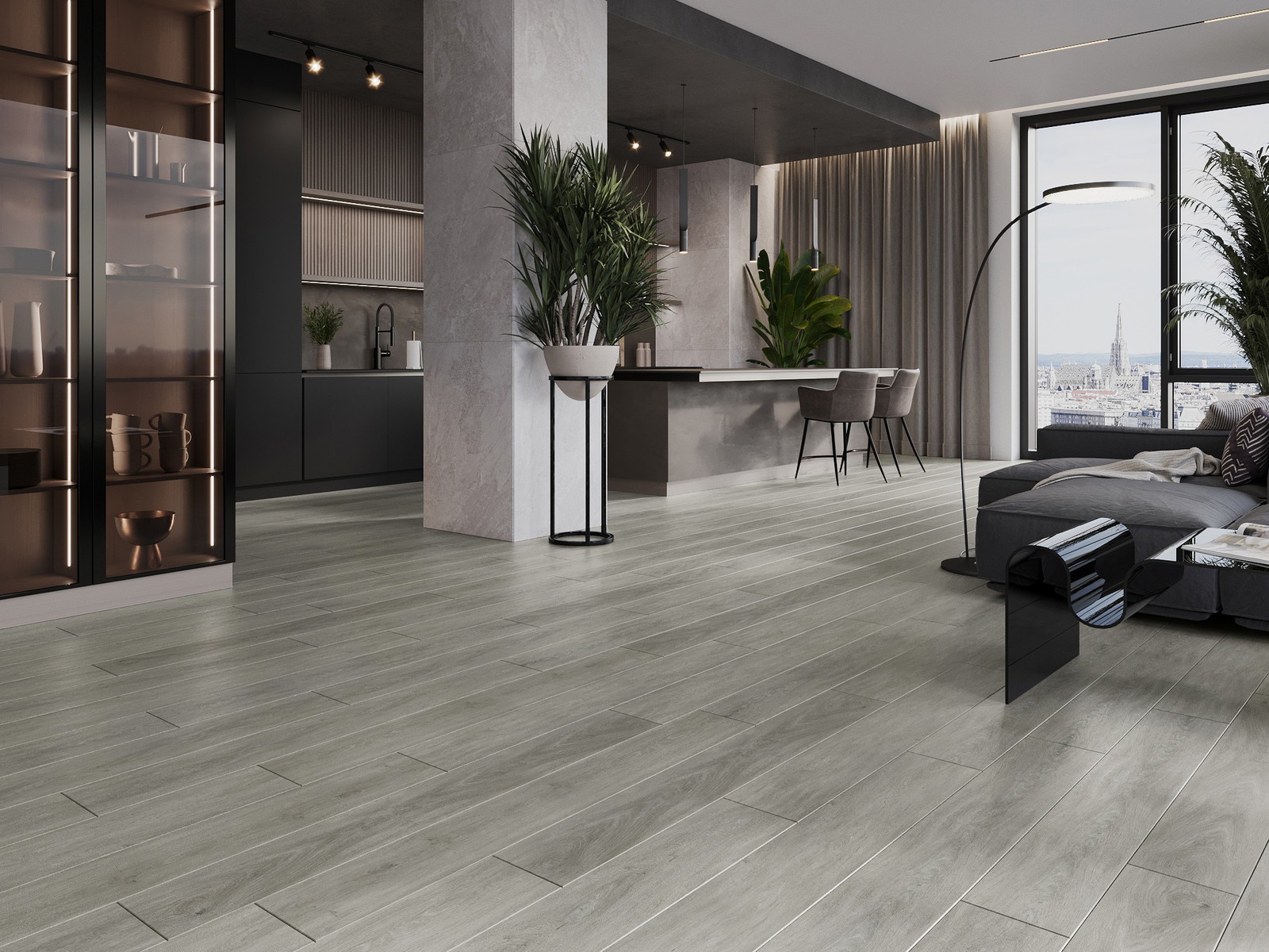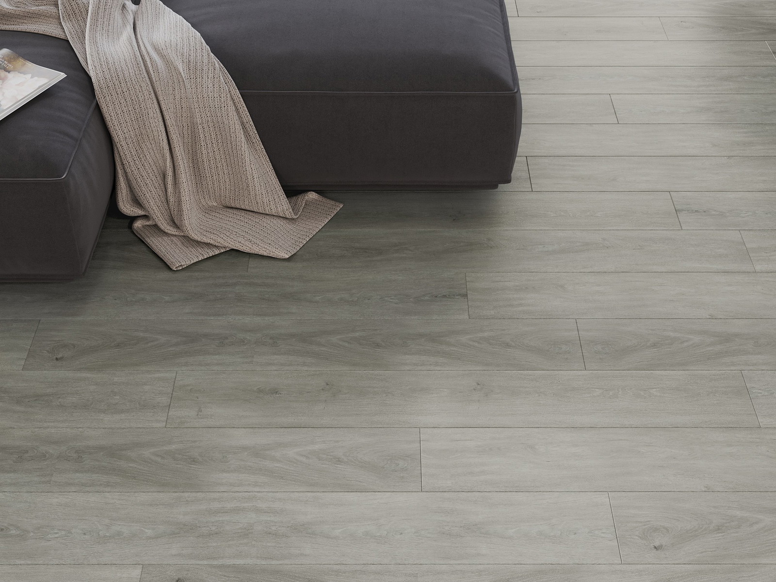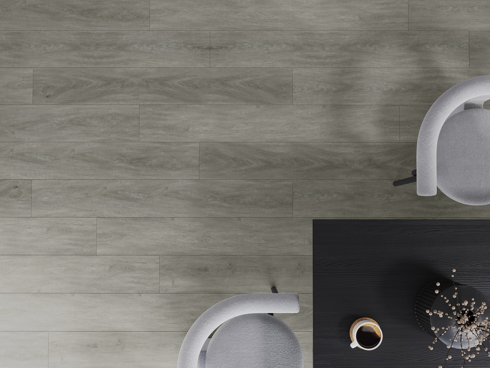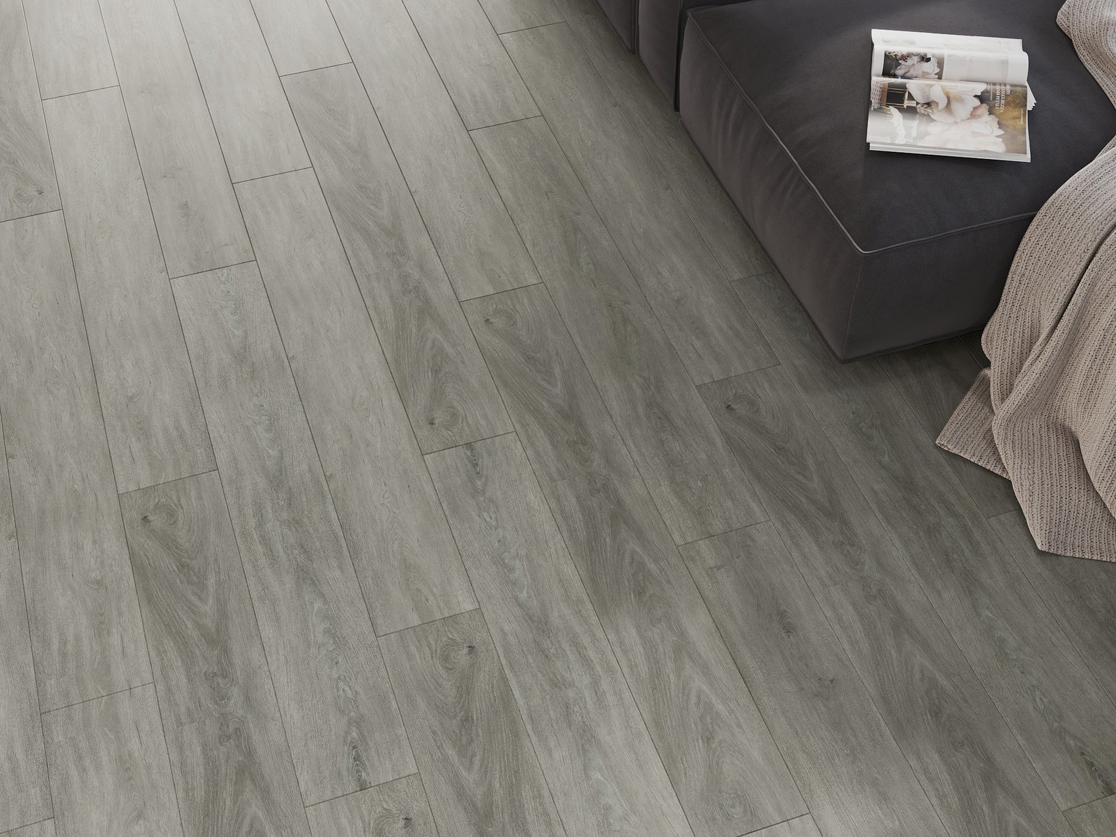 Panelerna har en 4-sidig fog - varje sida har frästs på ett sådant sätt att en V-formad fog skapas när de läggs. Denna design gör att golvet får en tydligare struktur, vilket ger det djup och estetisk karaktär. Denna effekt är särskilt uppskattad i moderna inredningar, där detaljerna betonar interiörens unika utseende.