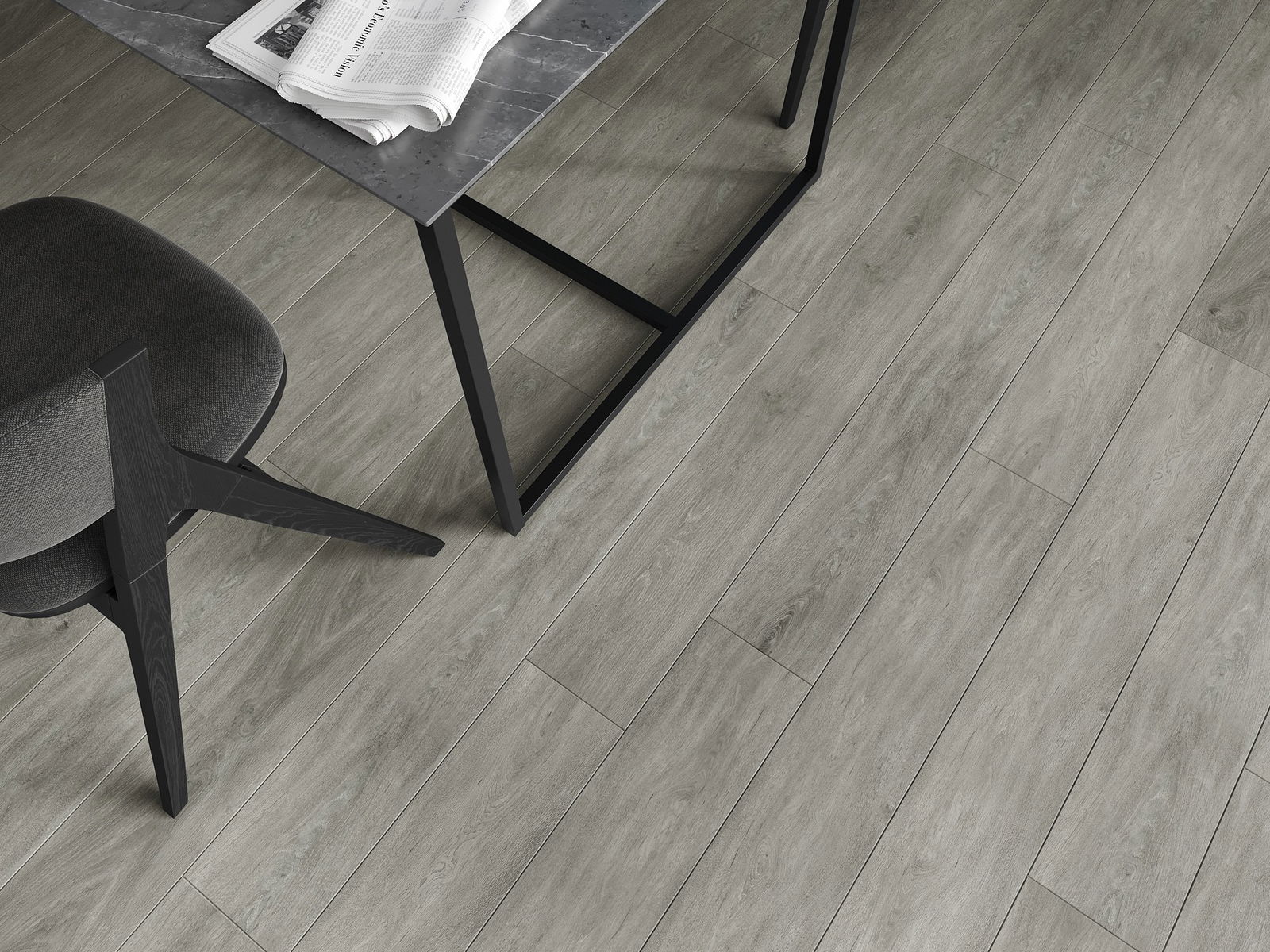 Panelerna har en 4-sidig fog - varje sida har frästs på ett sådant sätt att en V-formad fog skapas när de läggs. Denna design gör att golvet får en tydligare struktur, vilket ger det djup och estetisk karaktär. Denna effekt är särskilt uppskattad i moderna inredningar, där detaljerna betonar interiörens unika utseende.