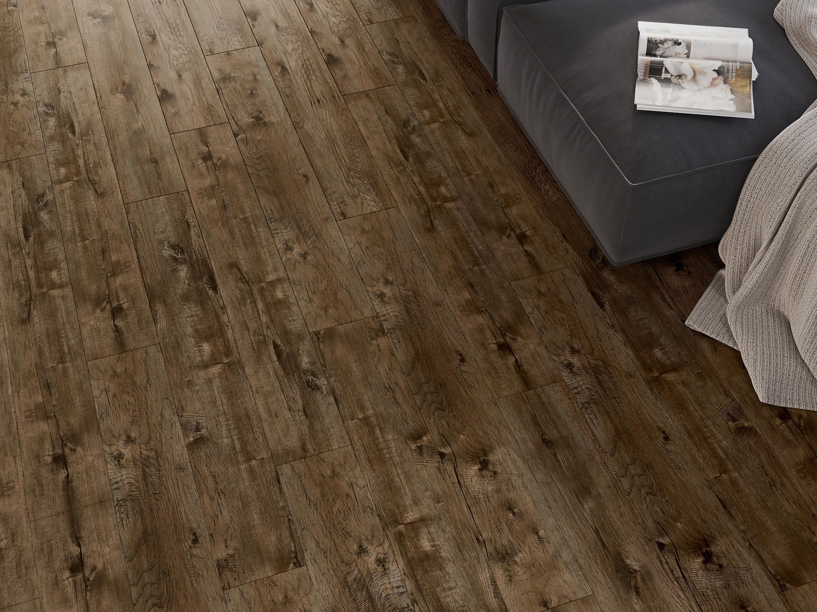 Panelerna har en 4-sidig fog - varje sida har frästs på ett sådant sätt att en V-formad fog skapas när de läggs. Denna design gör att golvet får en tydligare struktur, vilket ger det djup och estetisk karaktär. Denna effekt är särskilt uppskattad i moderna inredningar, där detaljerna betonar interiörens unika utseende.