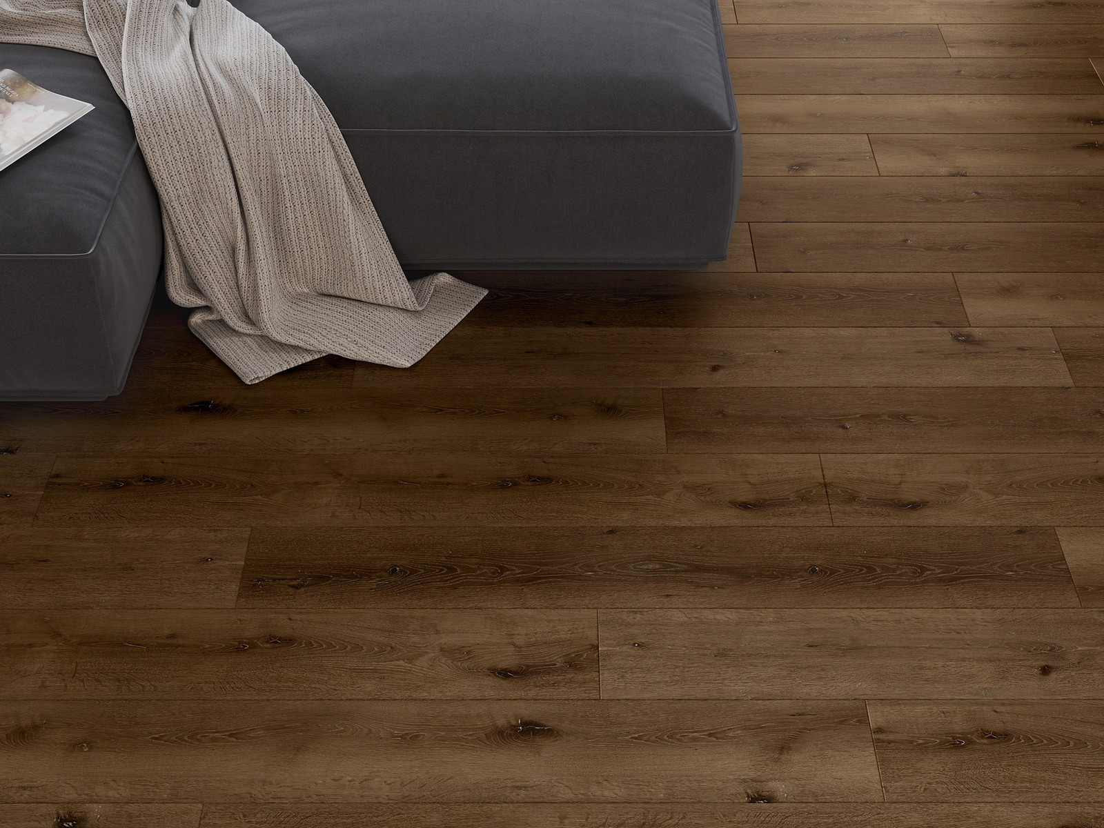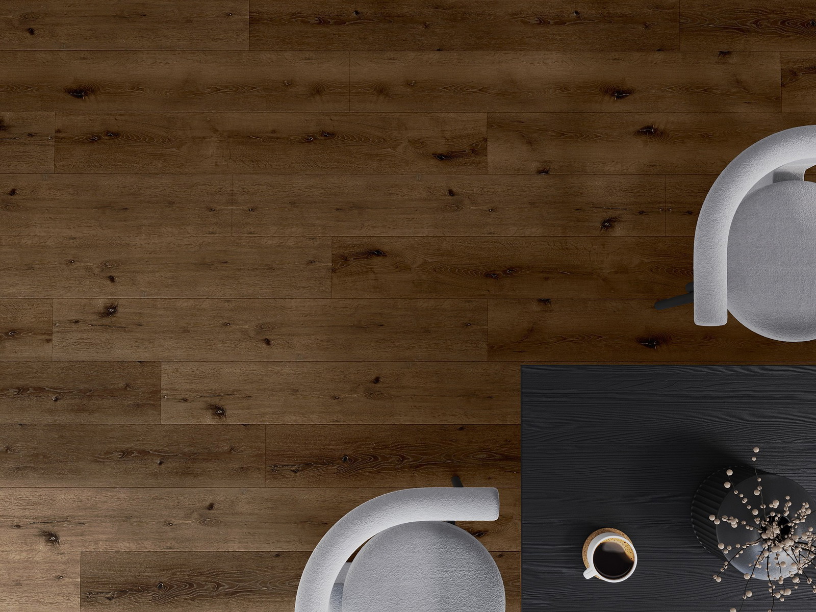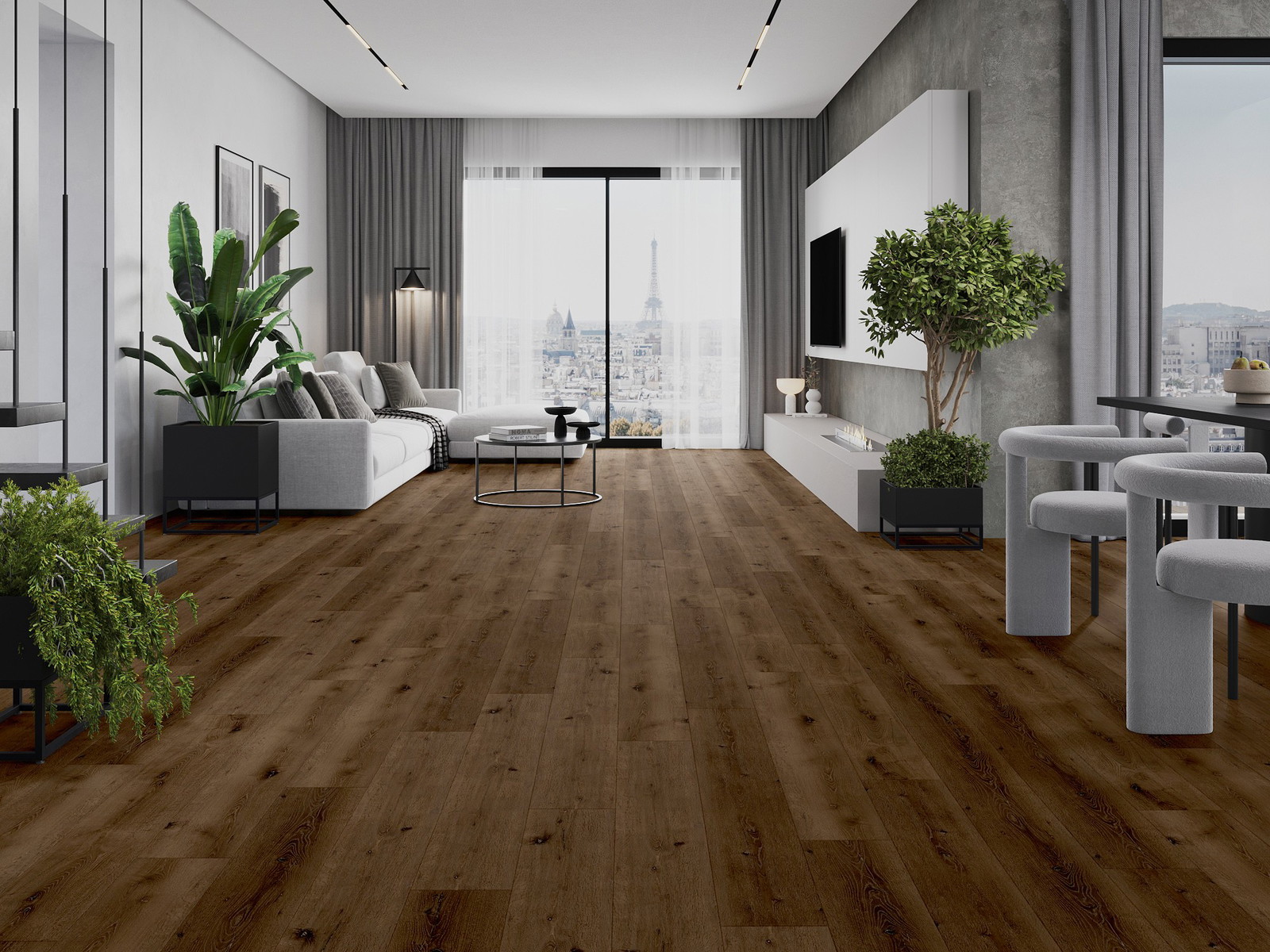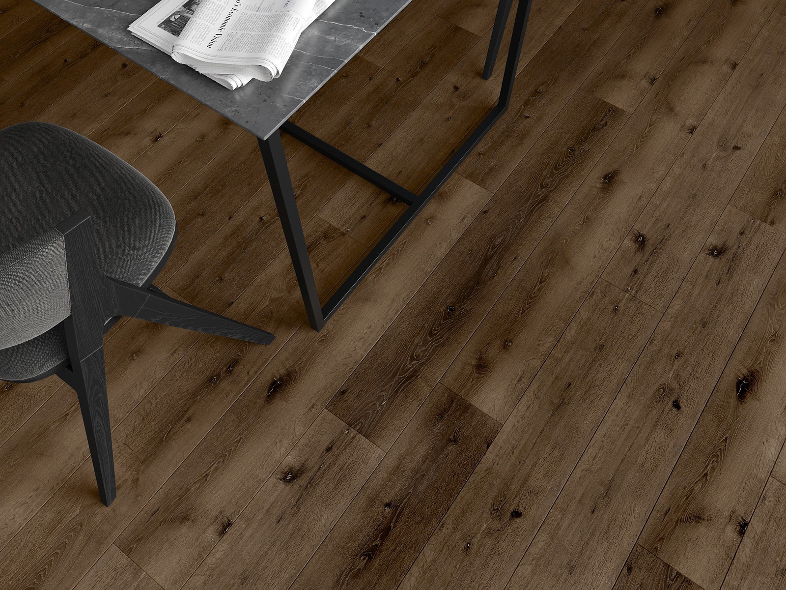 Panelerna har en 4-sidig fog - varje sida har frästs på ett sådant sätt att en V-formad fog skapas när de läggs. Denna design gör att golvet får en tydligare struktur, vilket ger det djup och estetisk karaktär. Denna effekt är särskilt uppskattad i moderna inredningar, där detaljerna betonar interiörens unika utseende.