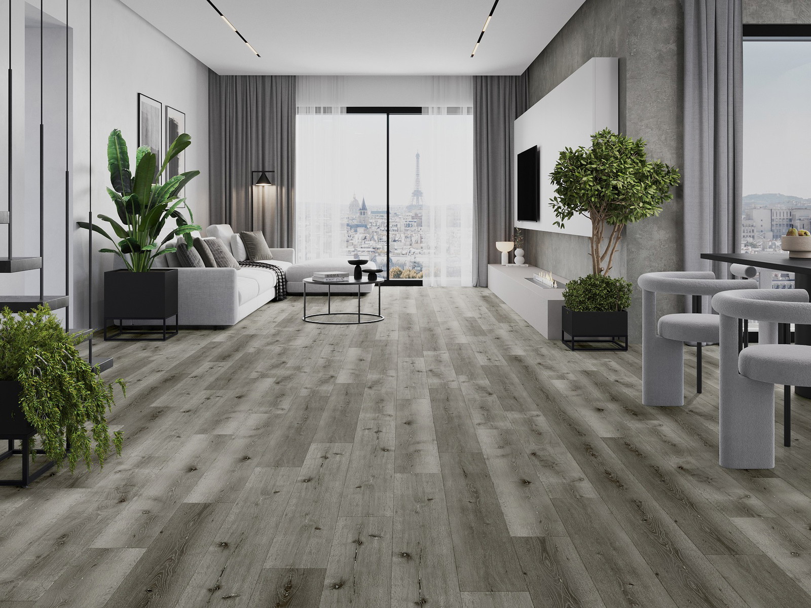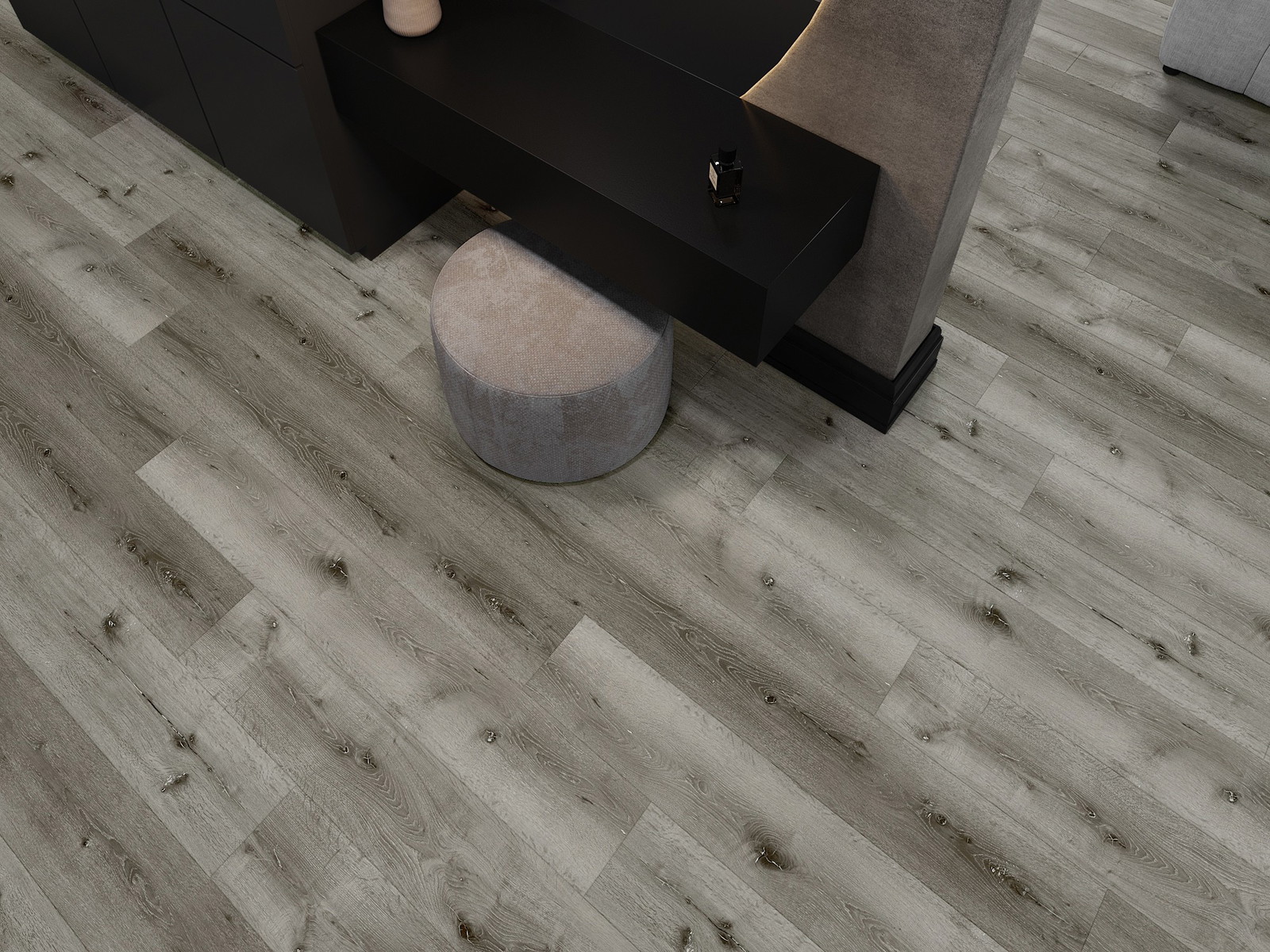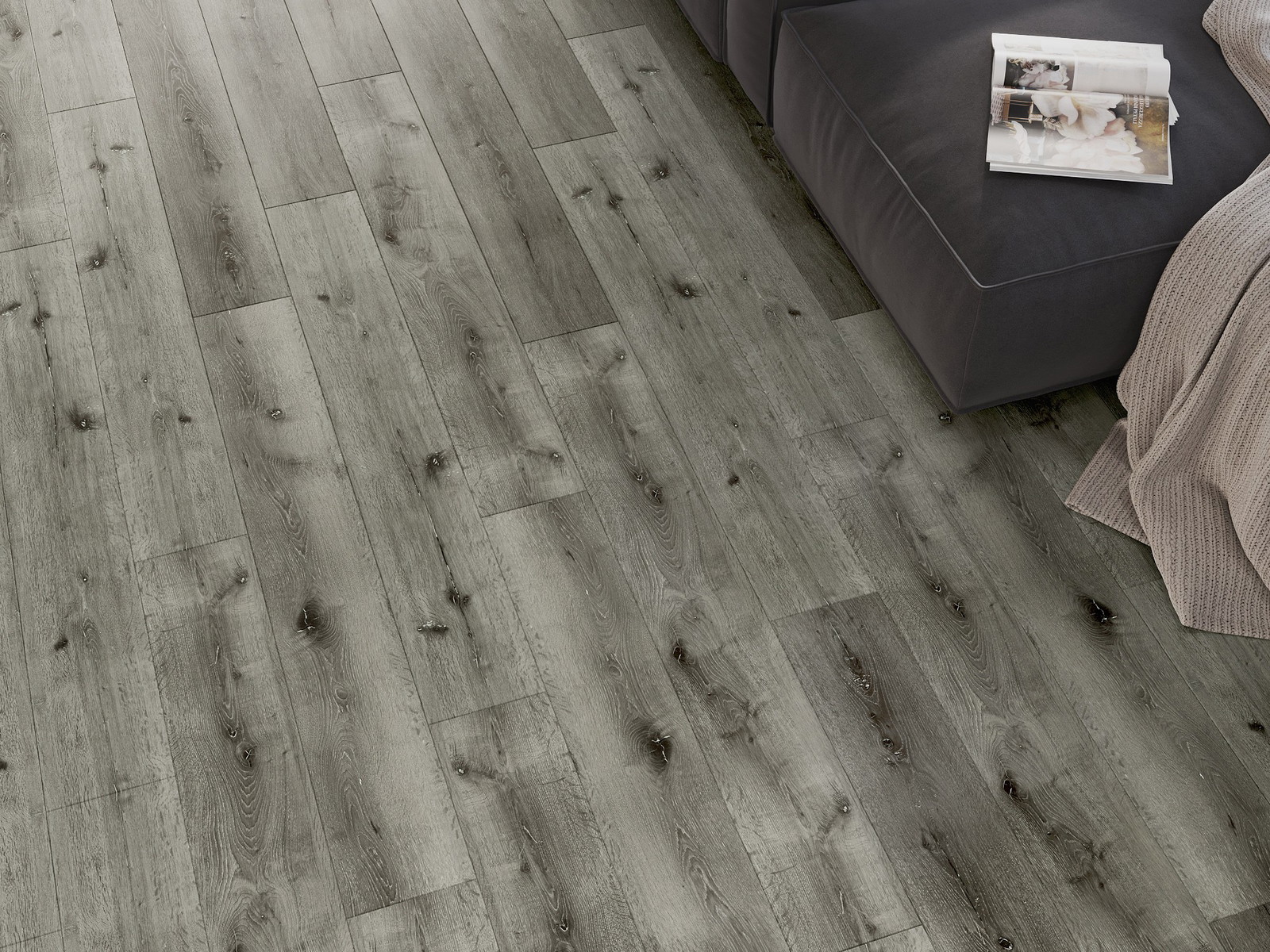Panelerna har en 4-sidig fog - varje sida har frästs på ett sådant sätt att en V-formad fog skapas när de läggs. Denna design gör att golvet får en tydligare struktur, vilket ger det djup och estetisk karaktär. Denna effekt är särskilt uppskattad i moderna inredningar, där detaljerna betonar interiörens unika utseende.