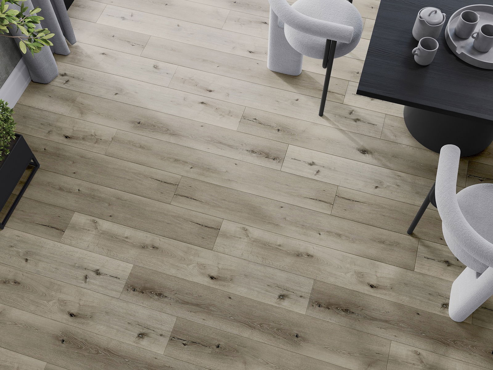 Panelerna har en 4-sidig fog - varje sida har frästs på ett sådant sätt att en V-formad fog skapas när de läggs. Denna design gör att golvet får en tydligare struktur, vilket ger det djup och estetisk karaktär. Denna effekt är särskilt uppskattad i moderna inredningar, där detaljerna betonar interiörens unika utseende.