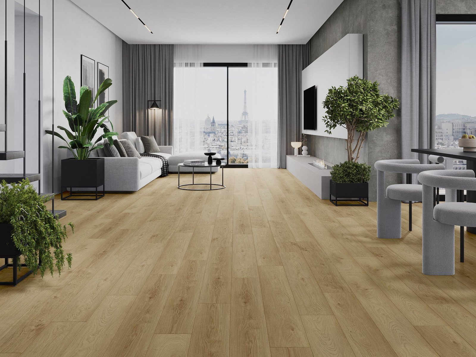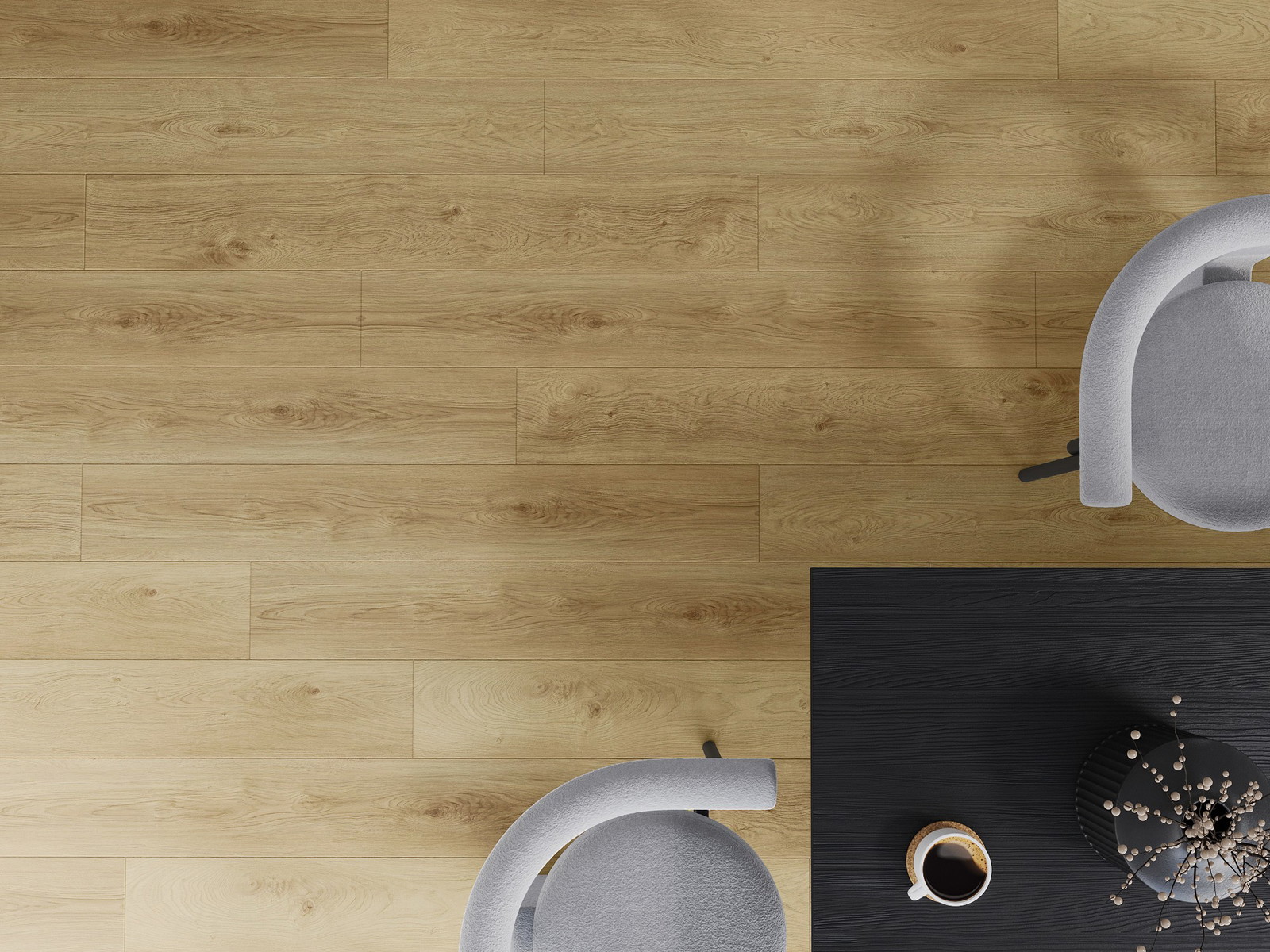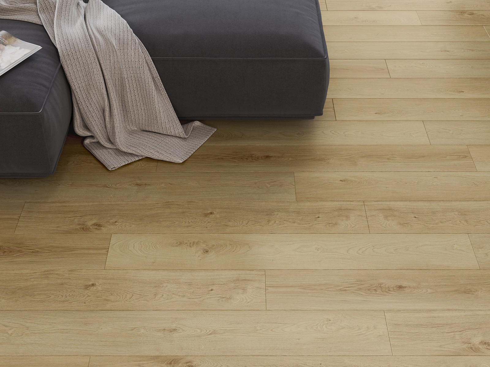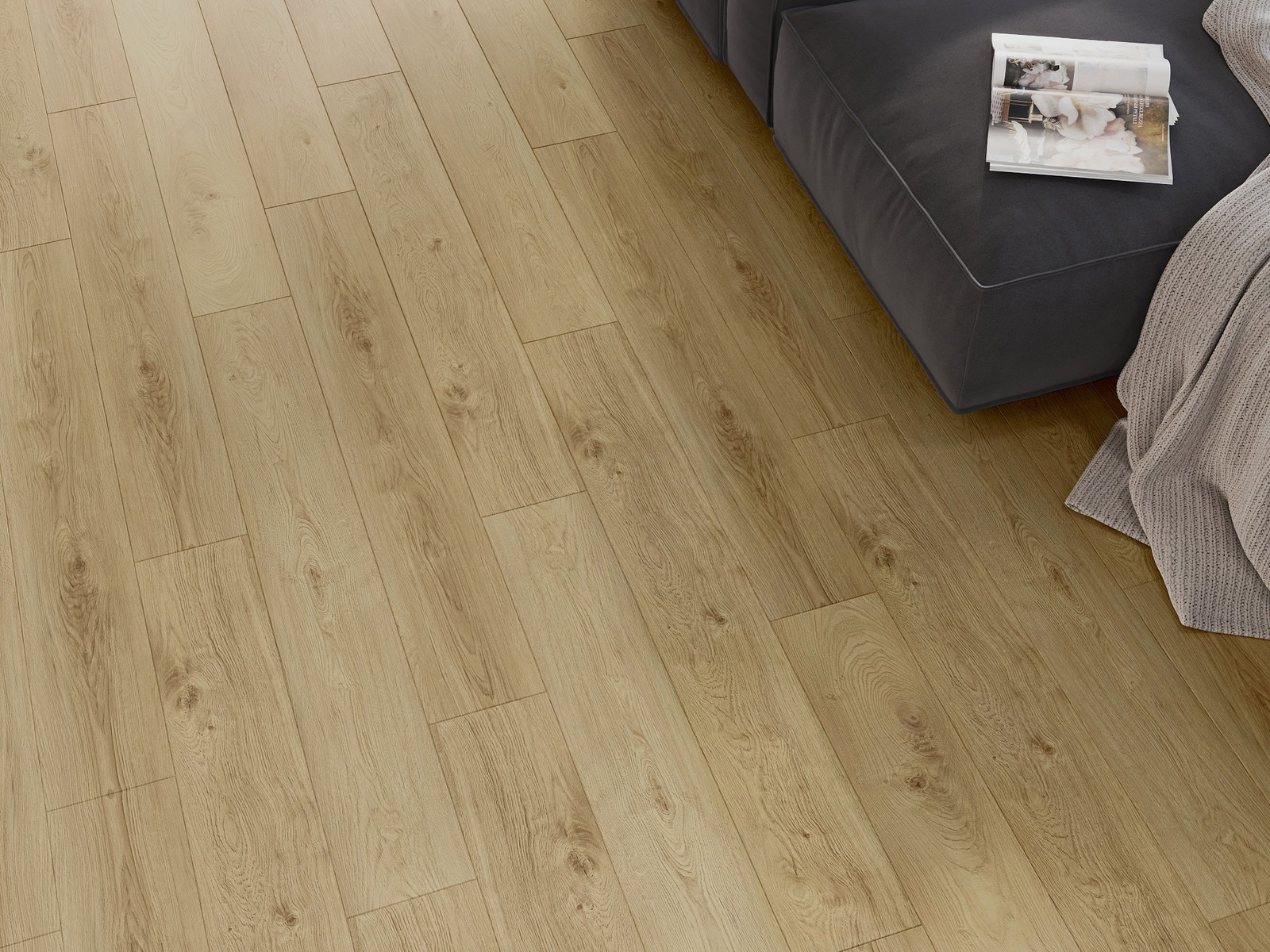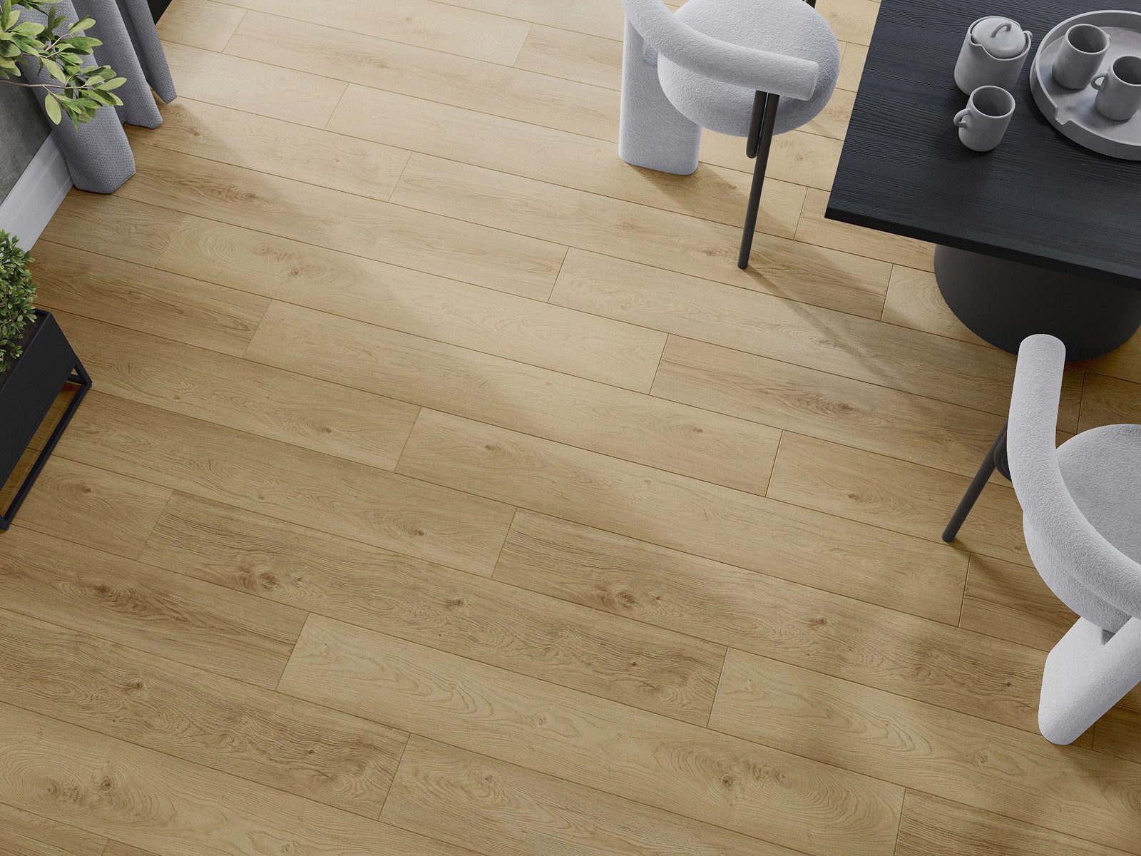 Panelerna har en 4-sidig fog - varje sida har frästs på ett sådant sätt att en V-formad fog skapas när de läggs. Denna design gör att golvet får en tydligare struktur, vilket ger det djup och estetisk karaktär. Denna effekt är särskilt uppskattad i moderna inredningar, där detaljerna betonar interiörens unika utseende.