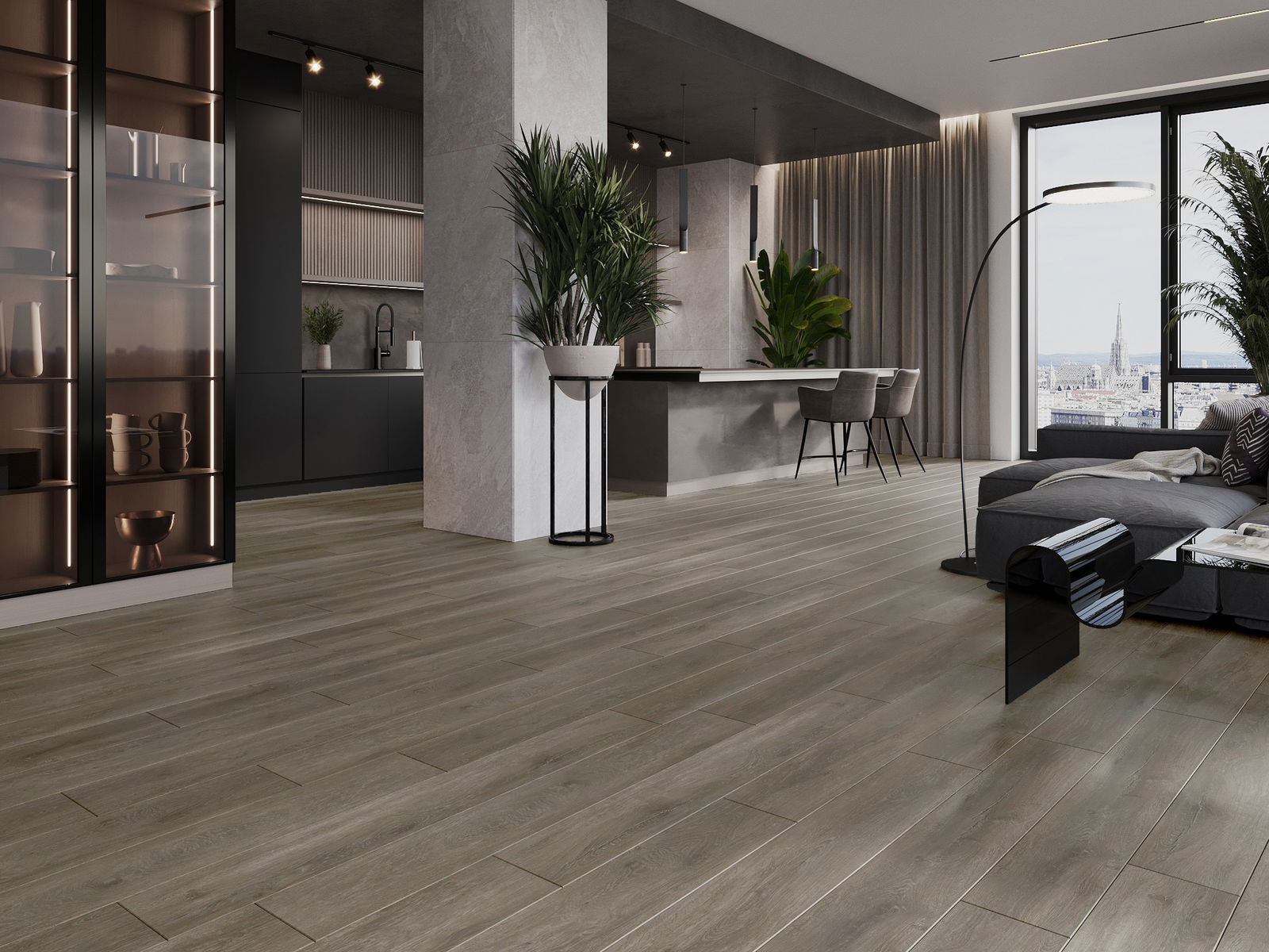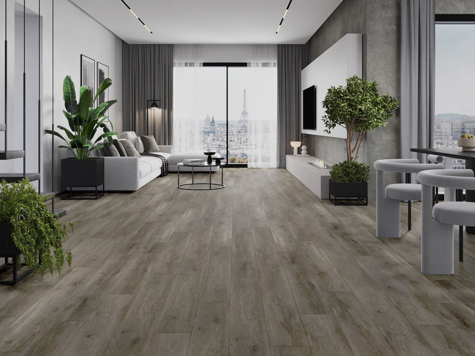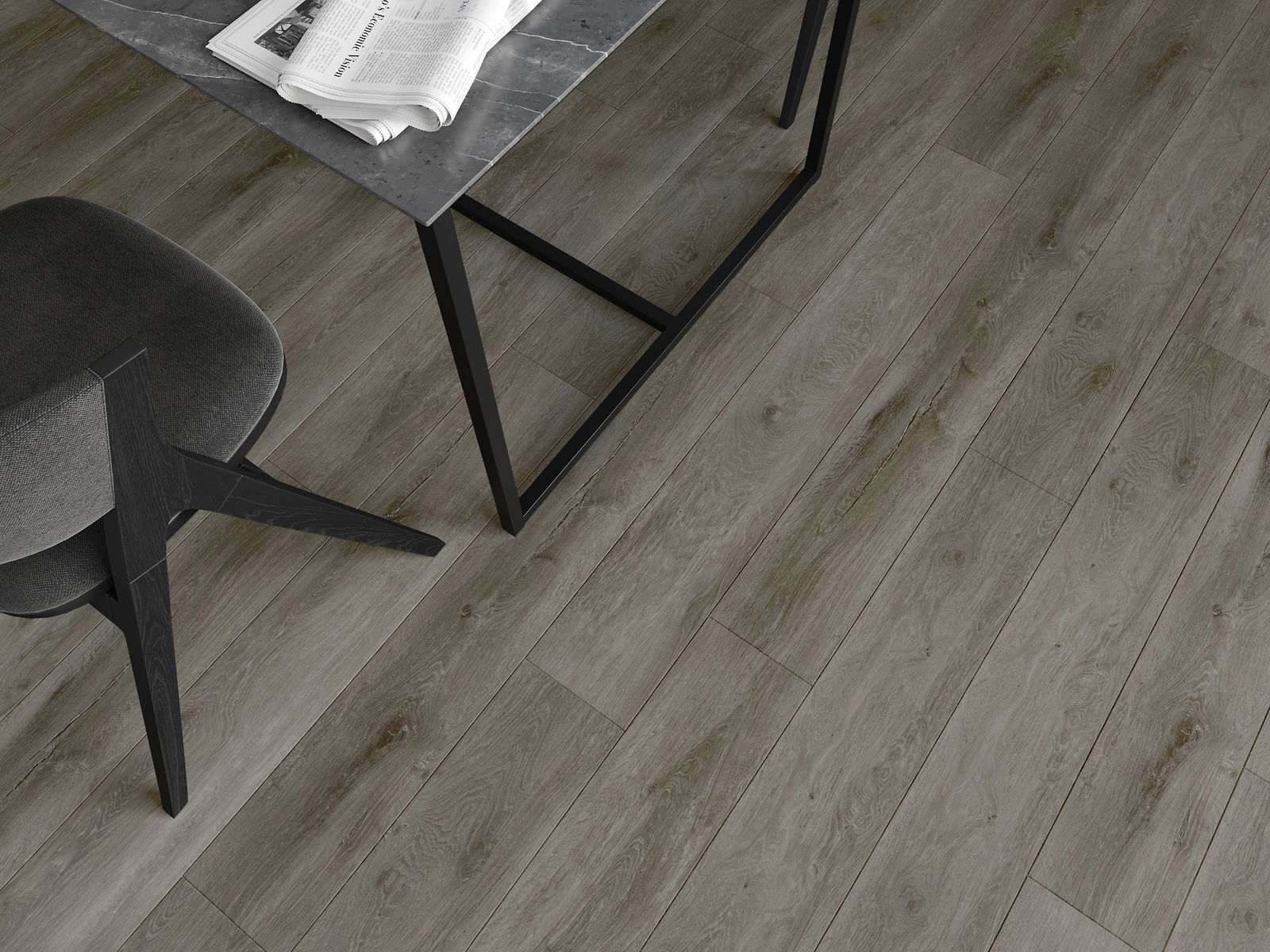 Panelerna har en 4-sidig fog - varje sida har frästs på ett sådant sätt att en V-formad fog skapas när de läggs. Denna design gör att golvet får en tydligare struktur, vilket ger det djup och estetisk karaktär. Denna effekt är särskilt uppskattad i moderna inredningar, där detaljerna betonar interiörens unika utseende.