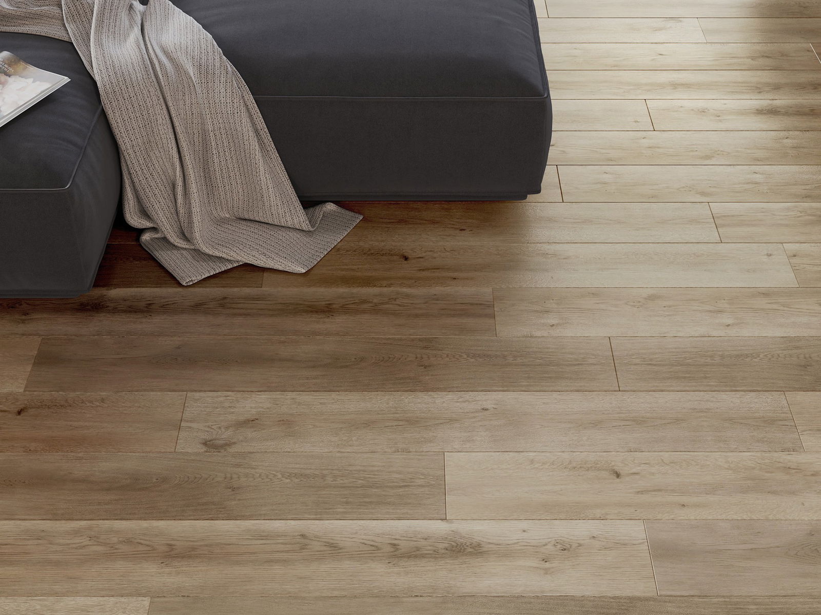 Panelerna har en 4-sidig fog - varje sida har frästs på ett sådant sätt att en V-formad fog skapas när de läggs. Denna design gör att golvet får en tydligare struktur, vilket ger det djup och estetisk karaktär. Denna effekt är särskilt uppskattad i moderna inredningar, där detaljerna betonar interiörens unika utseende.