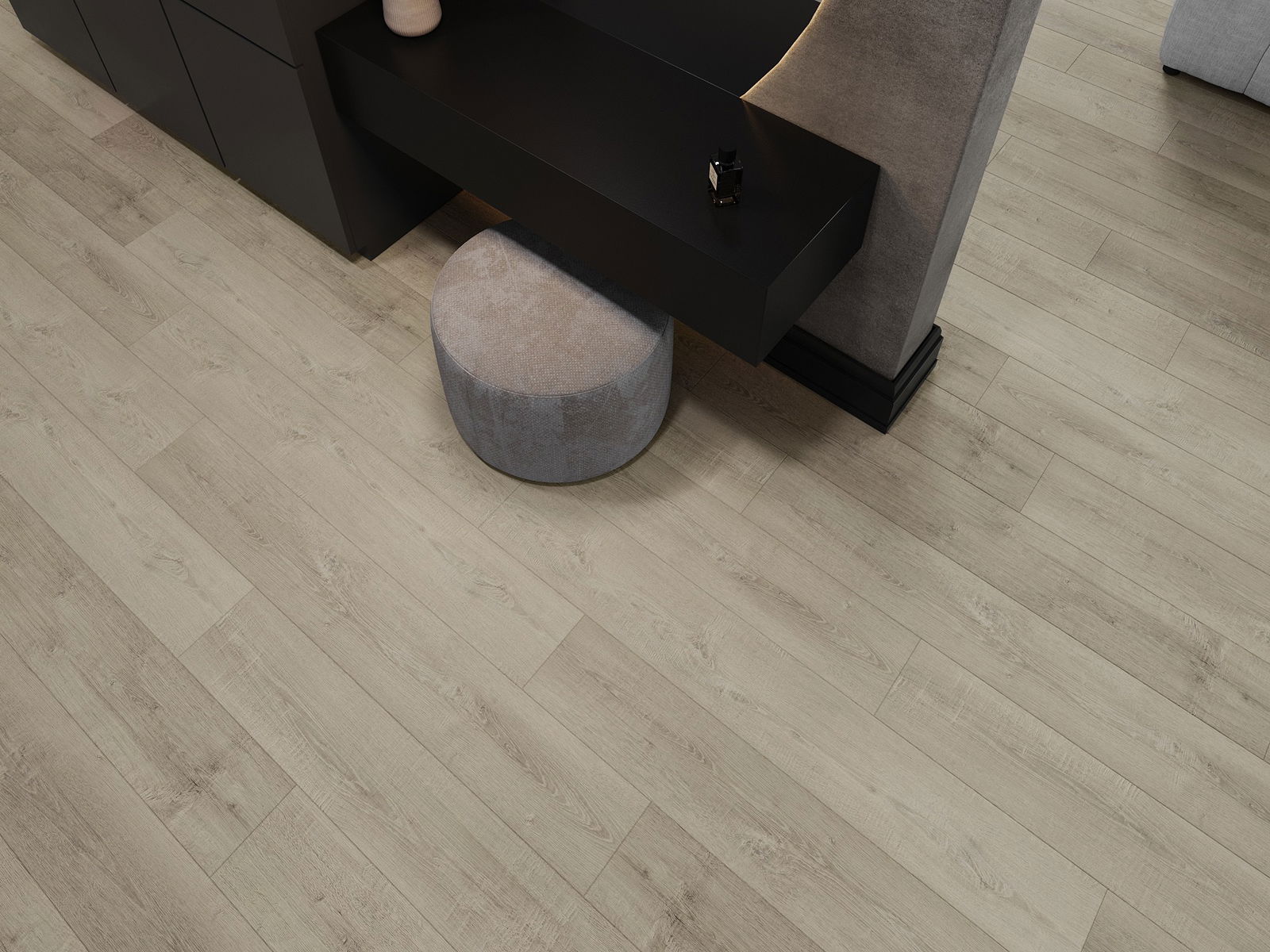 Panelerna har en 4-sidig fog - varje sida har frästs på ett sådant sätt att en V-formad fog skapas när de läggs. Denna design gör att golvet får en tydligare struktur, vilket ger det djup och estetisk karaktär. Denna effekt är särskilt uppskattad i moderna inredningar, där detaljerna betonar interiörens unika utseende.