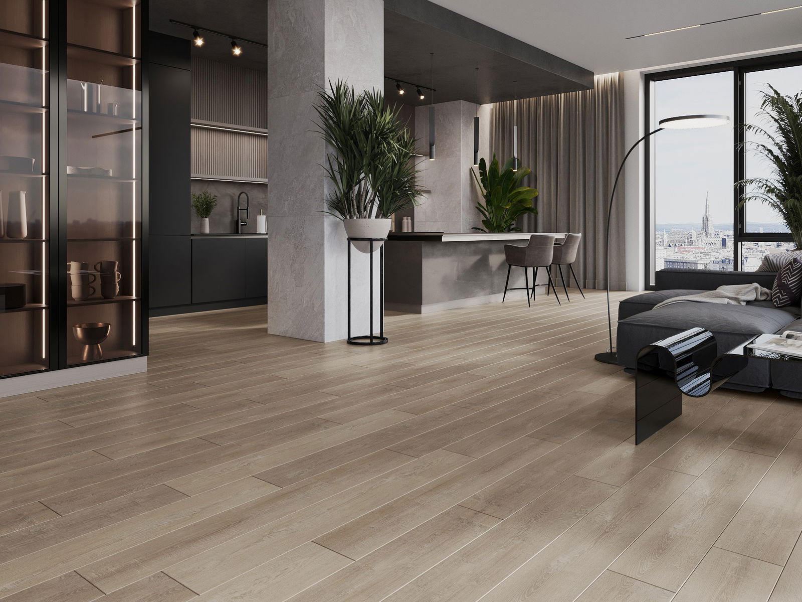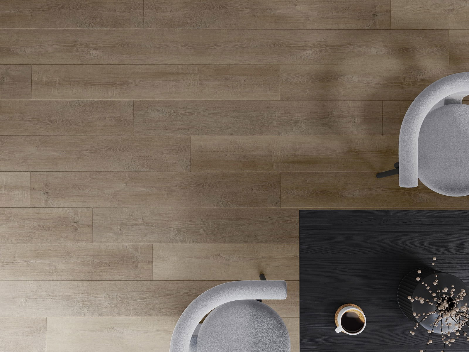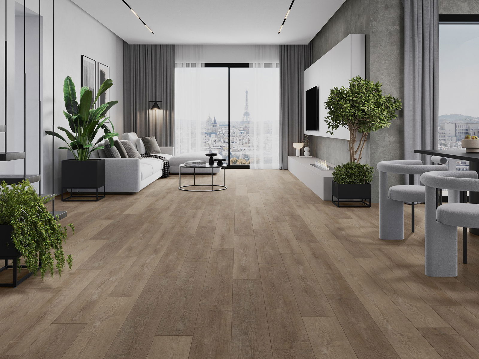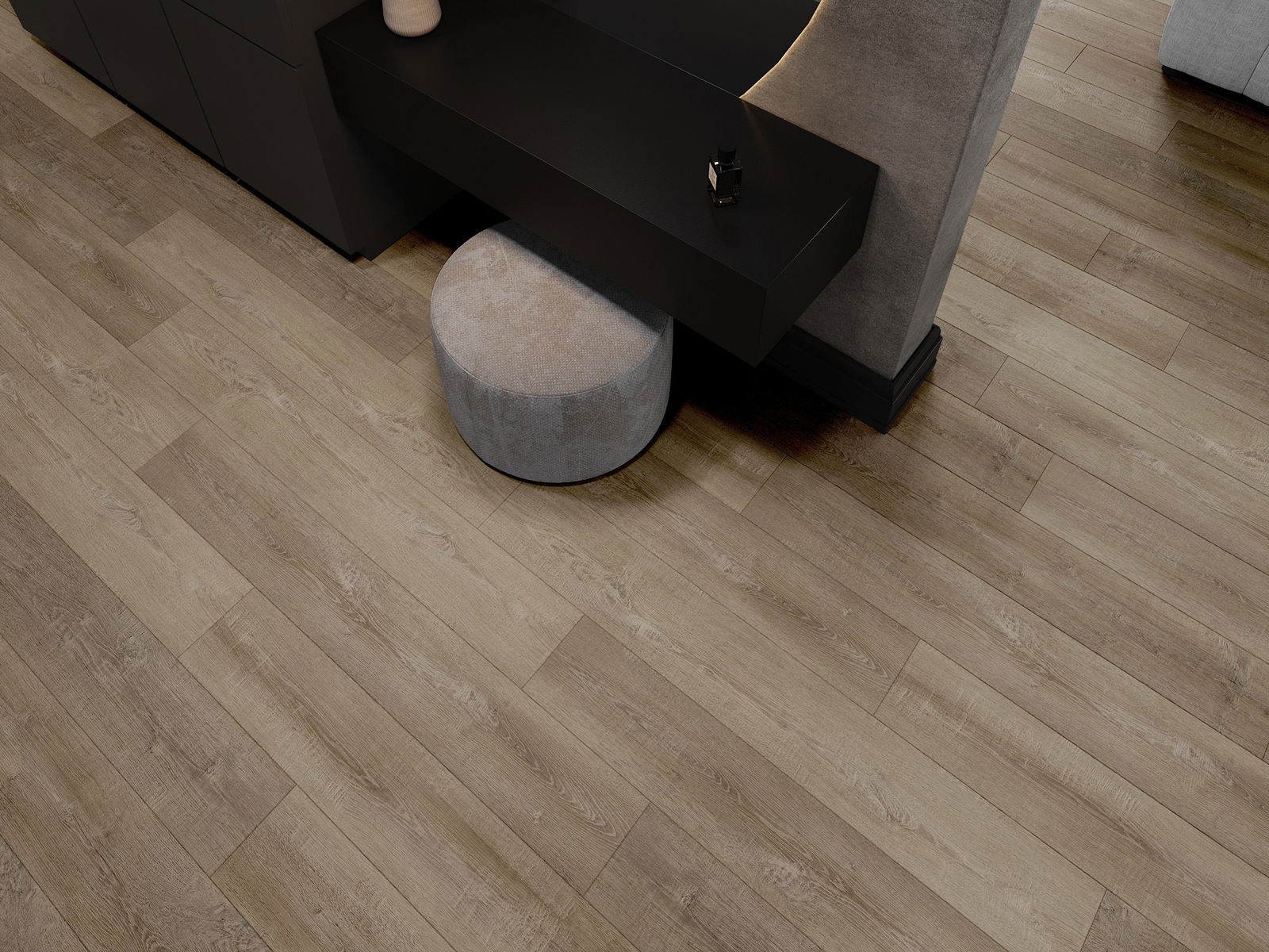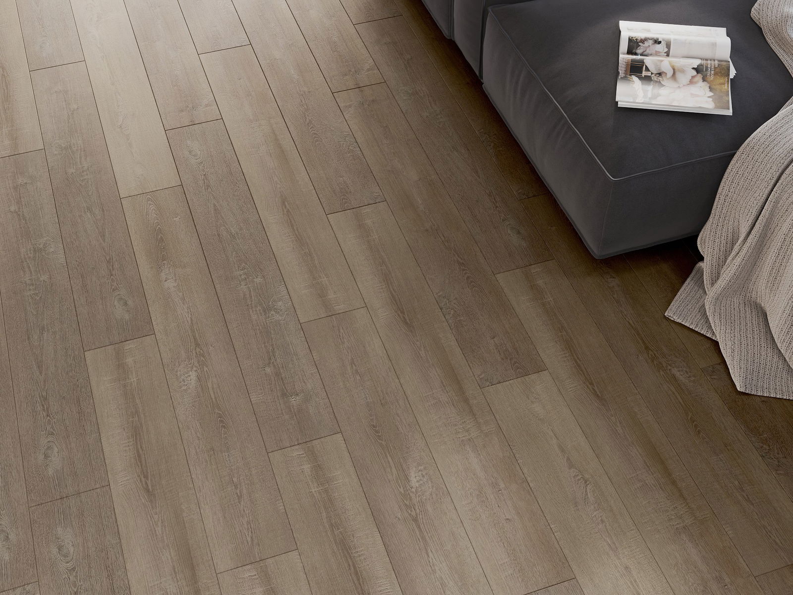 Panelerna har en 4-sidig fog - varje sida har frästs på ett sådant sätt att en V-formad fog skapas när de läggs. Denna design gör att golvet får en tydligare struktur, vilket ger det djup och estetisk karaktär. Denna effekt är särskilt uppskattad i moderna inredningar, där detaljerna betonar interiörens unika utseende.