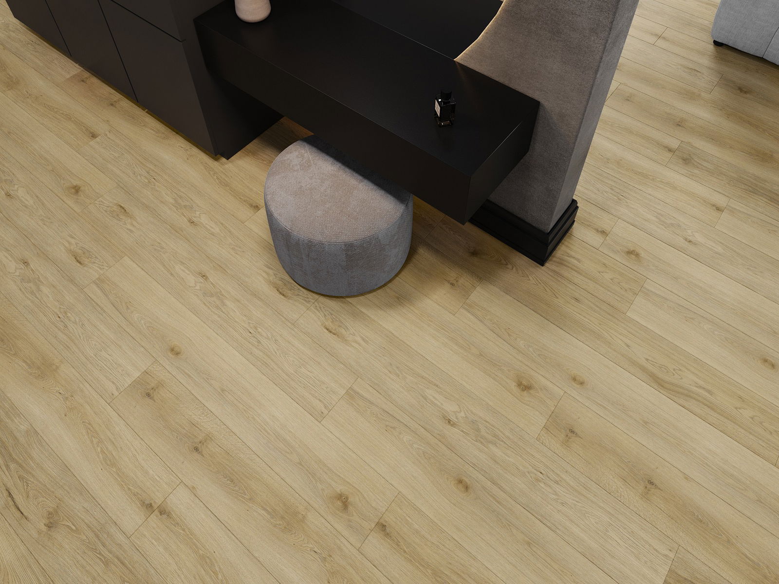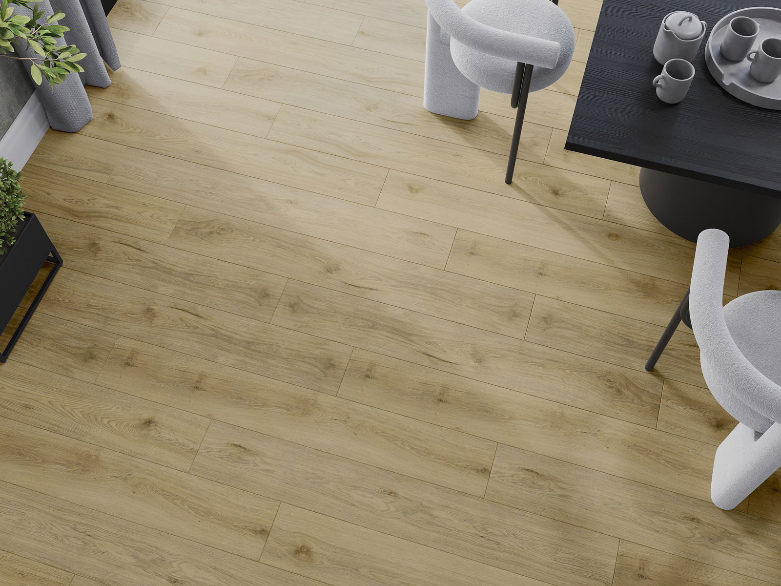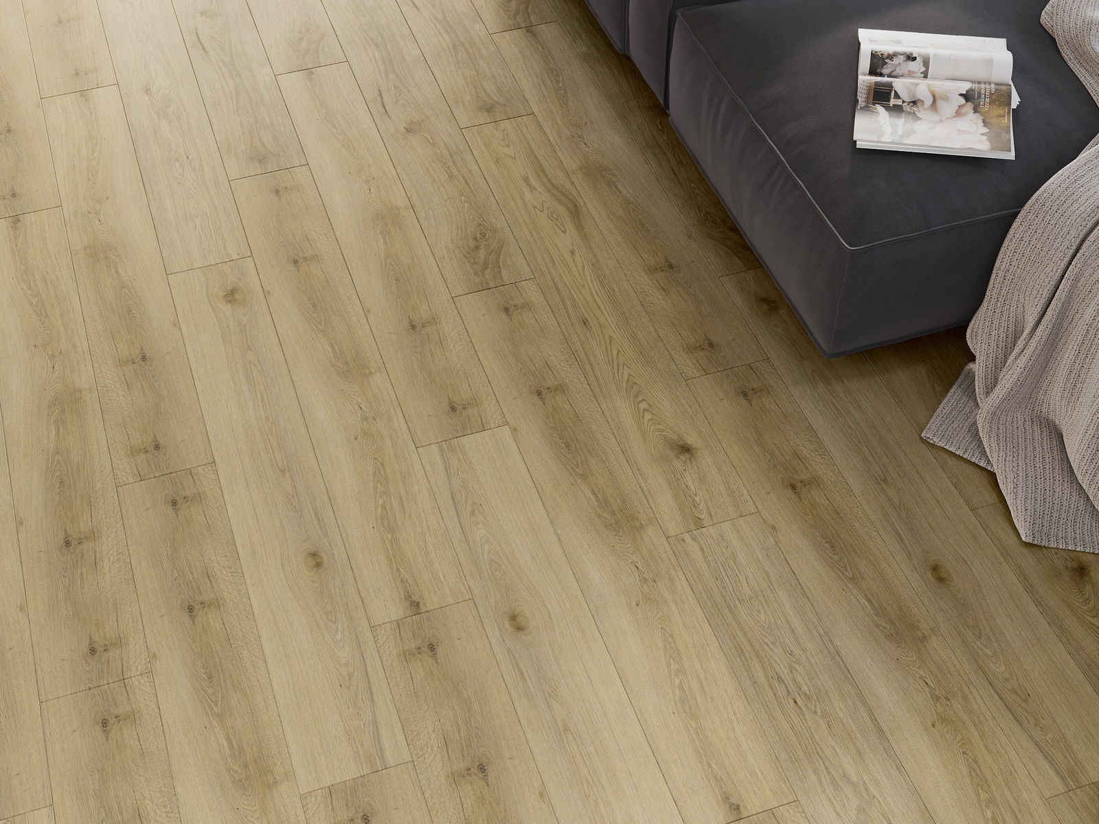 Panelerna har en 4-sidig fog - varje sida har frästs på ett sådant sätt att en V-formad fog skapas när de läggs. Denna design gör att golvet får en tydligare struktur, vilket ger det djup och estetisk karaktär. Denna effekt är särskilt uppskattad i moderna inredningar, där detaljerna betonar interiörens unika utseende.