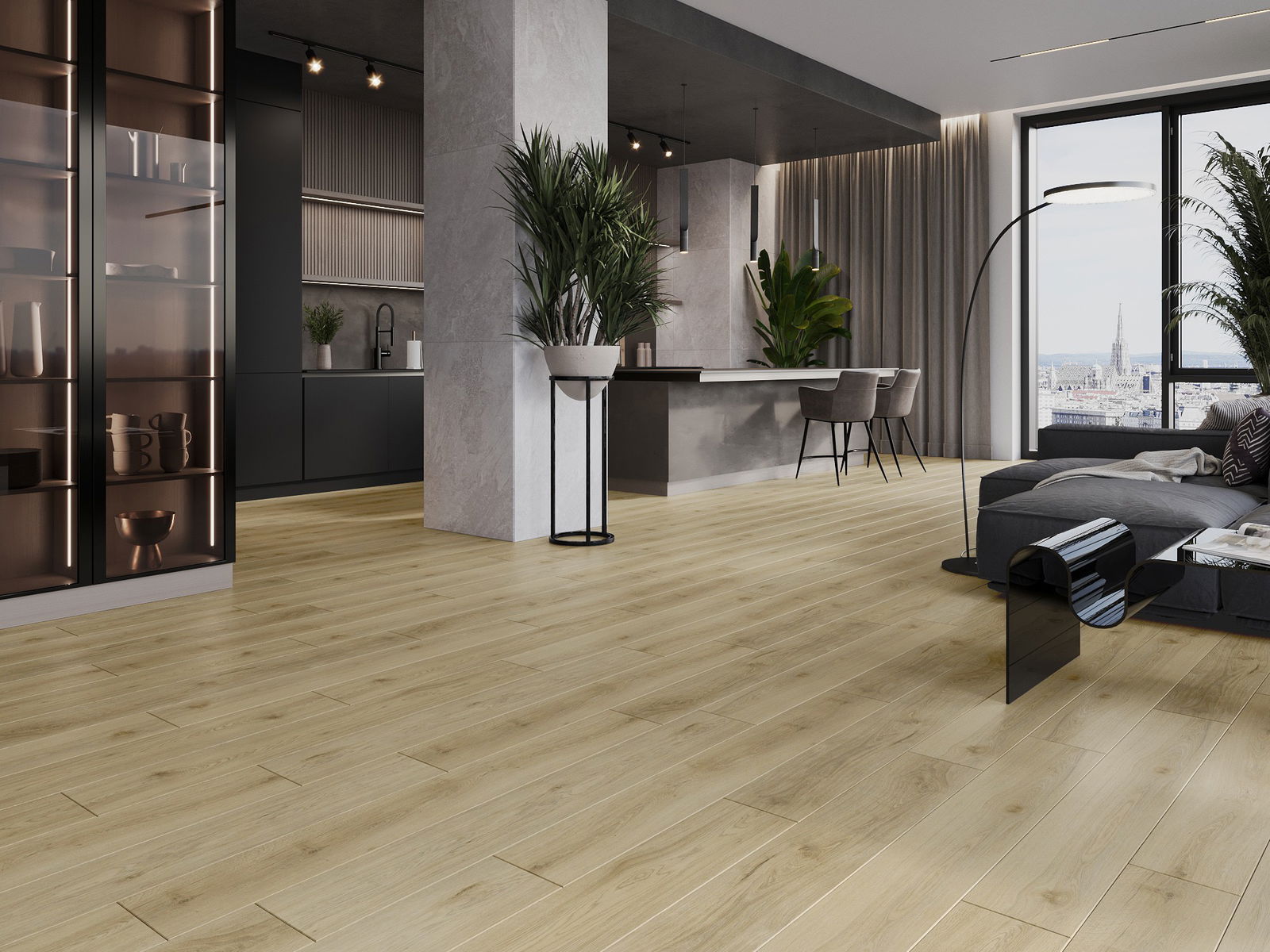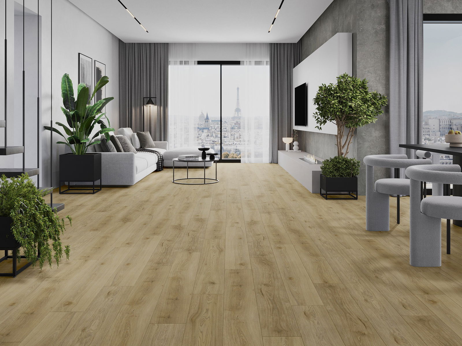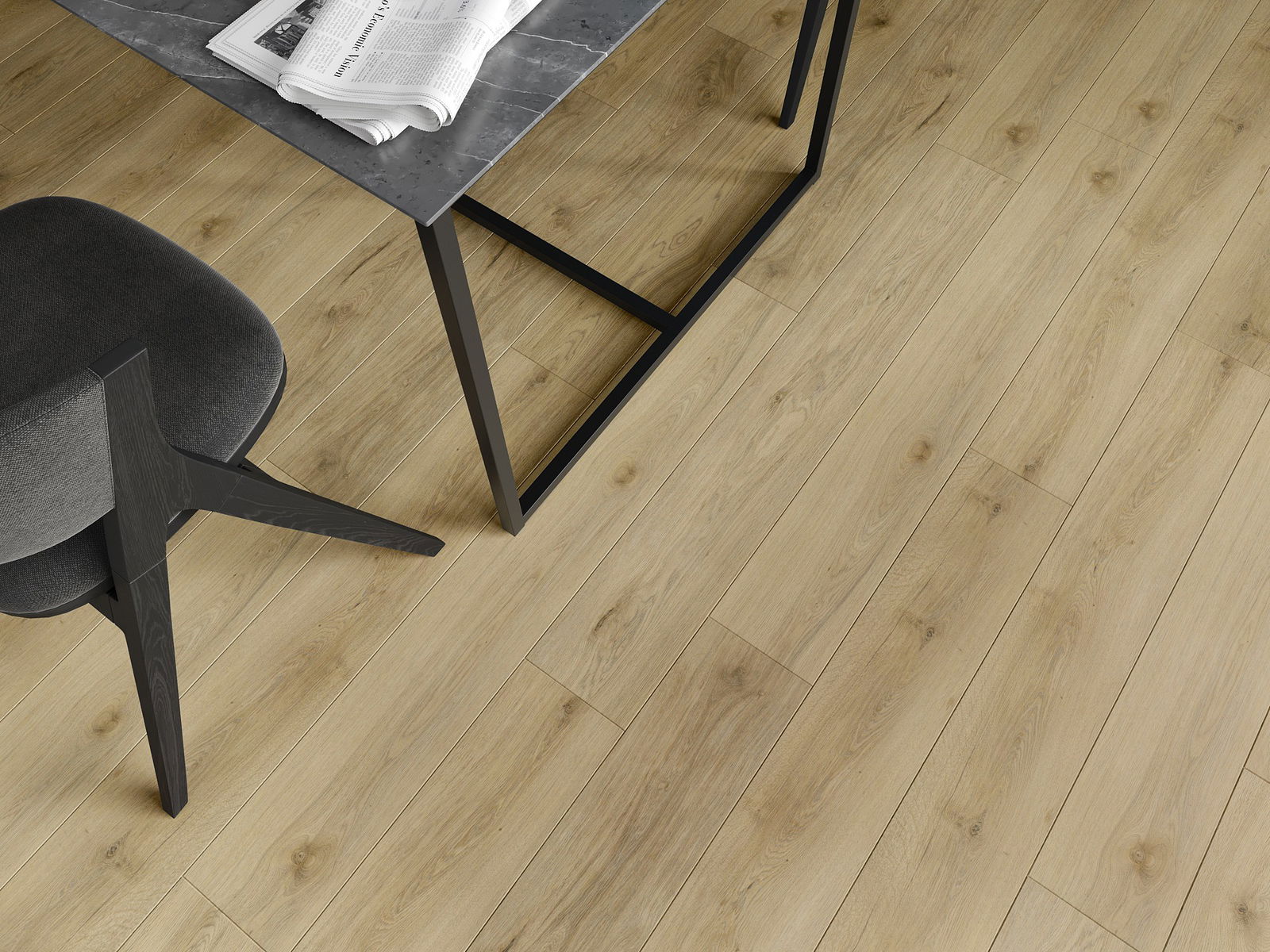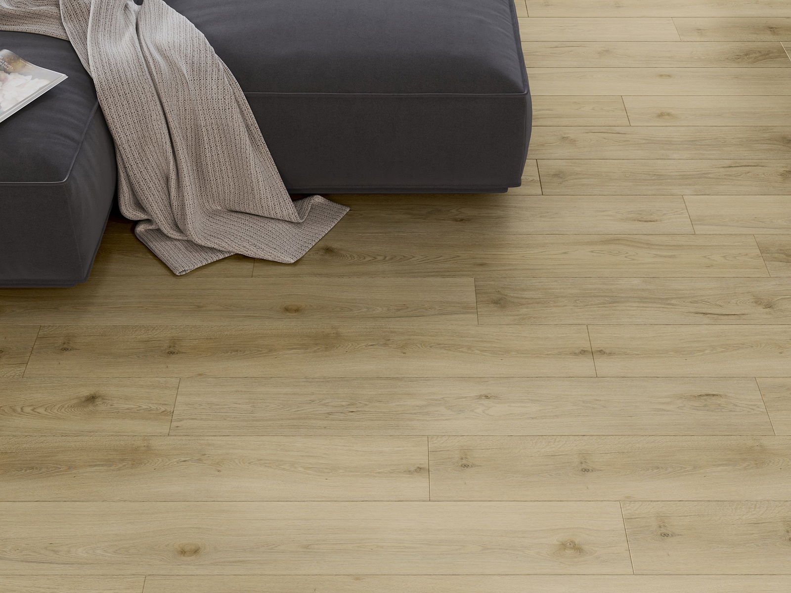 Panelerna har en 4-sidig fog - varje sida har frästs på ett sådant sätt att en V-formad fog skapas när de läggs. Denna design gör att golvet får en tydligare struktur, vilket ger det djup och estetisk karaktär. Denna effekt är särskilt uppskattad i moderna inredningar, där detaljerna betonar interiörens unika utseende.