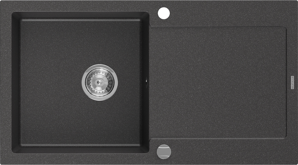 Mexen Leo granitdiskbänk med 1 ho och avrinningsyta 900 x 500 mm, svart stänkt, kromavlopp - 6501901010-76