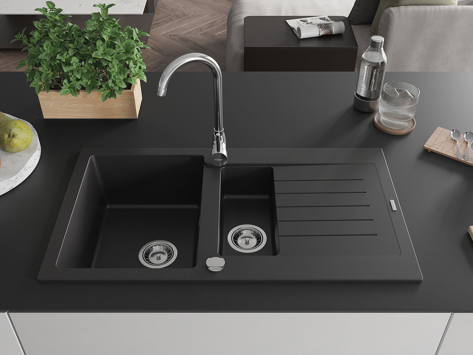 En väl skyddad yta på diskbänken förhindrar att smuts tränger in i dess inre strukturer. Tack vare detta är det ännu enklare att hålla diskbänken ren, och dess yta behåller sin estetik längre.