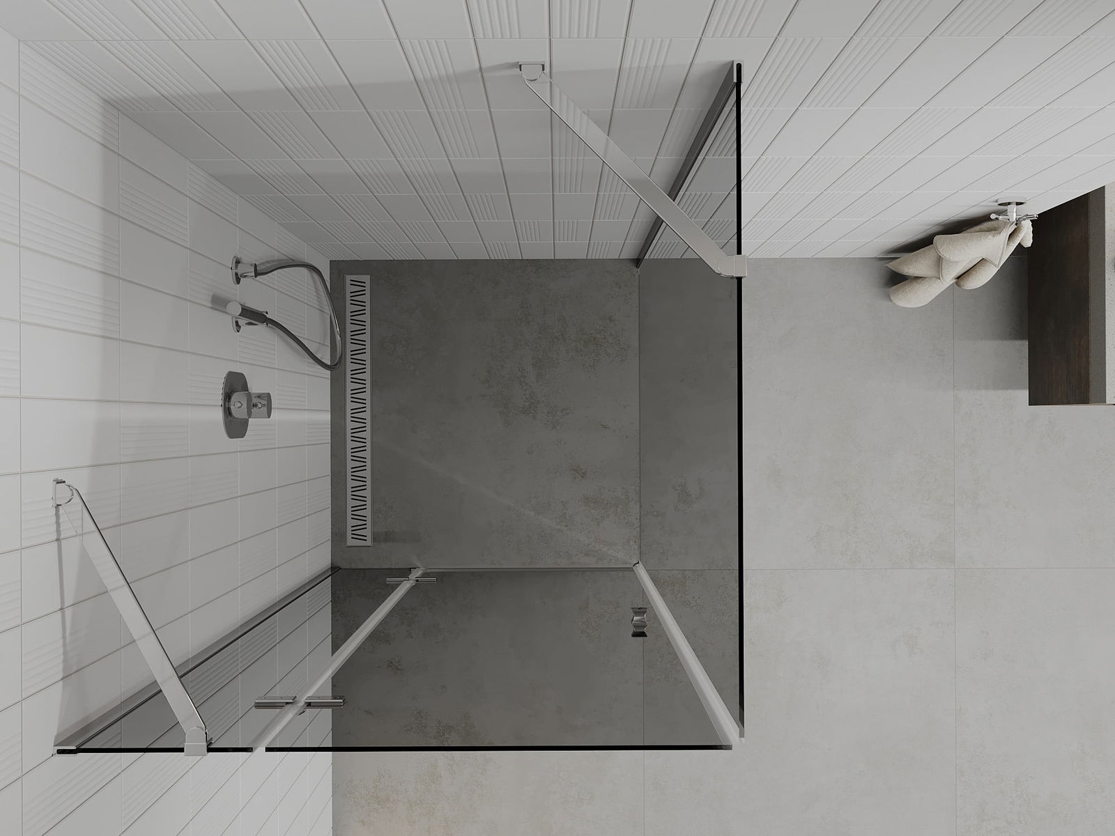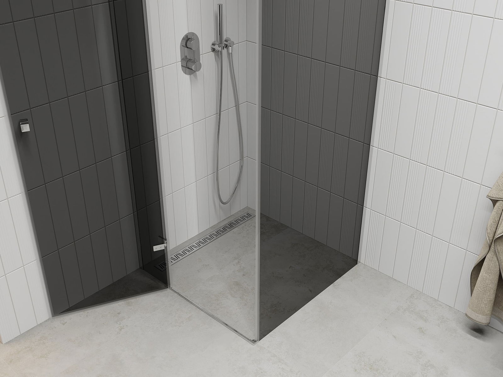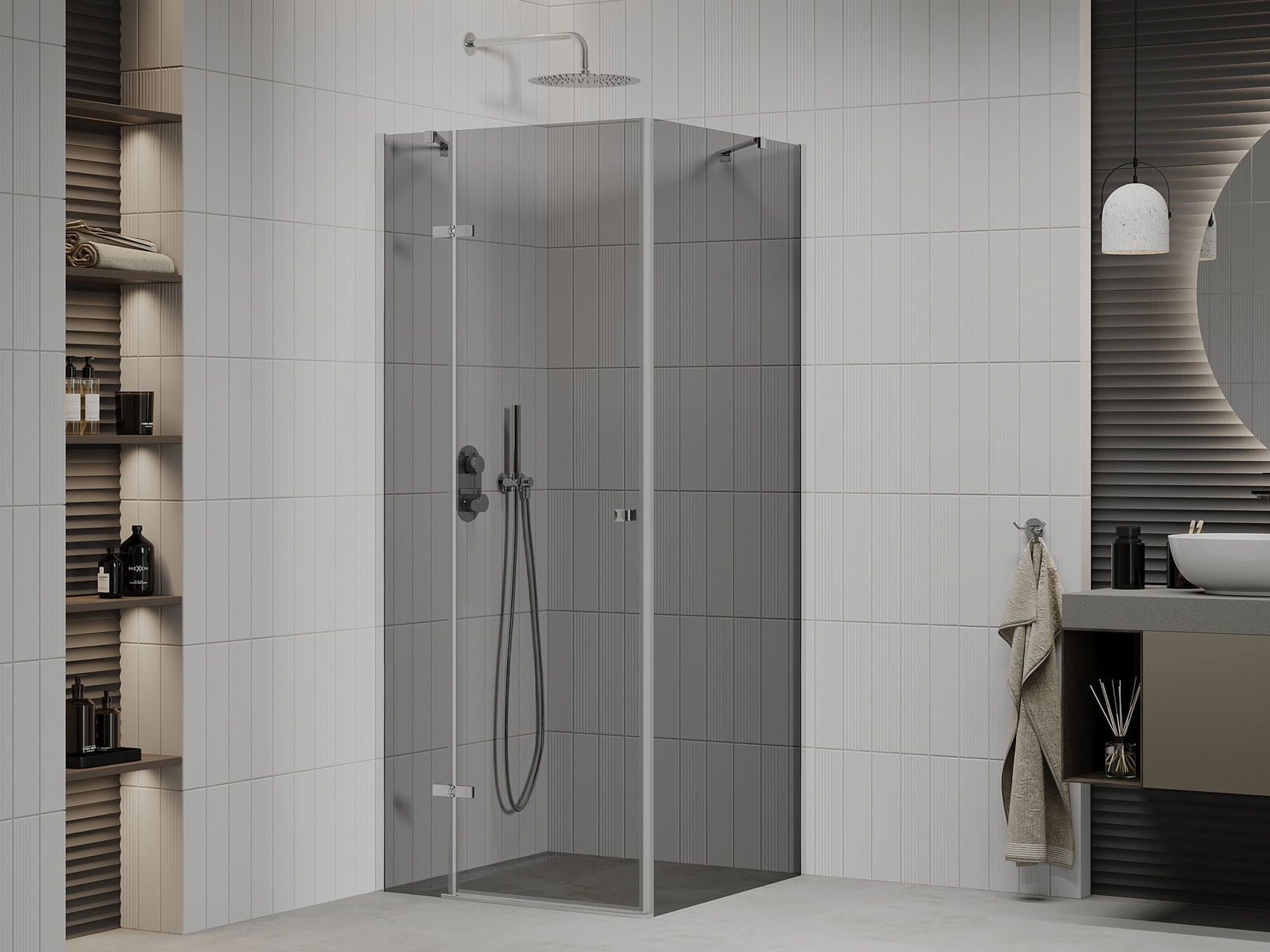 Det praktiska och bekväma handtaget är tillverkat av hållbar och tålig metall. Den moderna formen i kombination med en finish som matchar profilernas färg ger helheten ett modernt och stilfullt utseende, samtidigt som det framhäver estetiken i varje badrum.