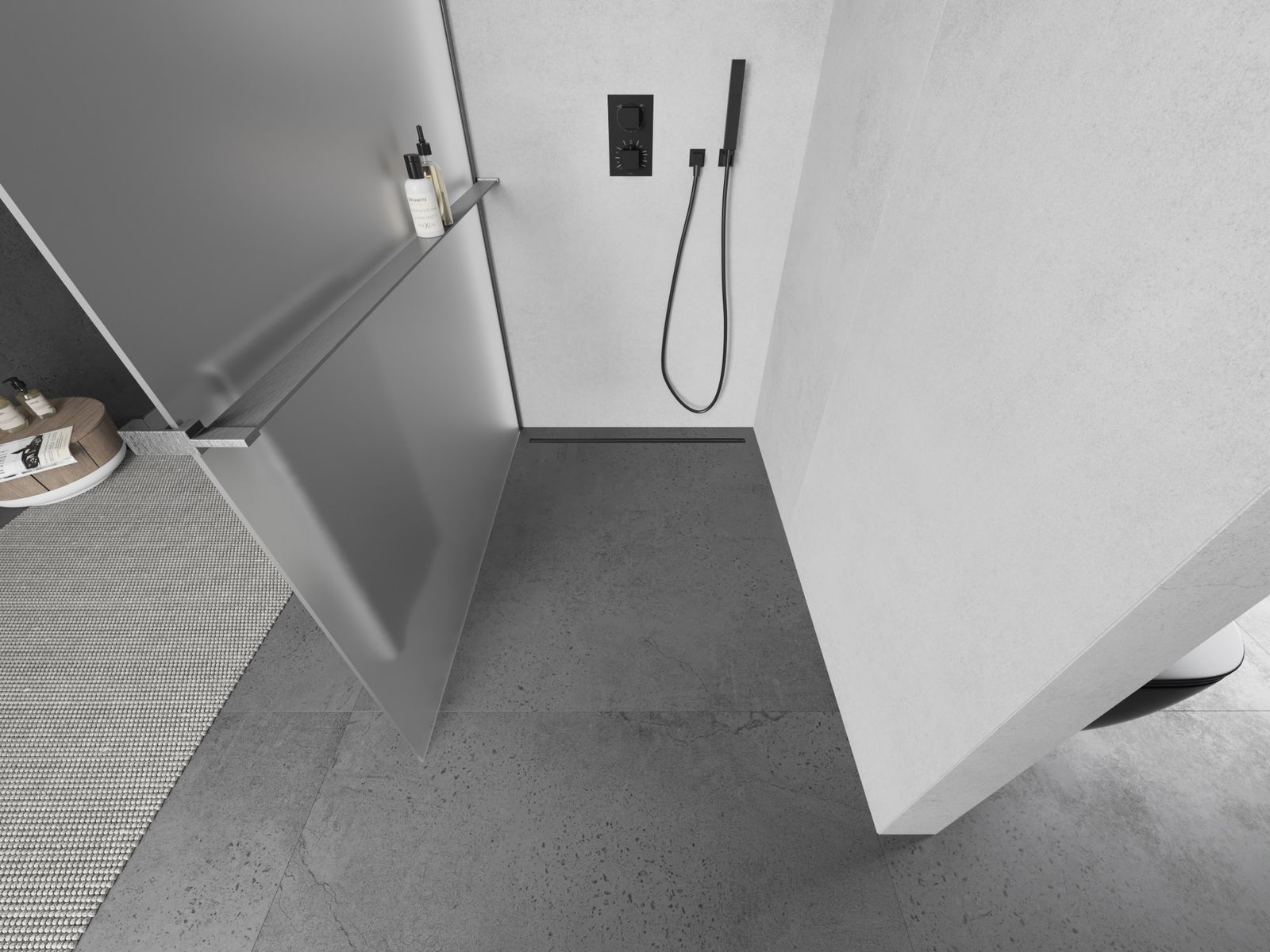 Mexen Kioto+ duschvägg med hylla Walk-in 120 x 200 cm, frost, borstade gun gray - 800-120-121-66-30