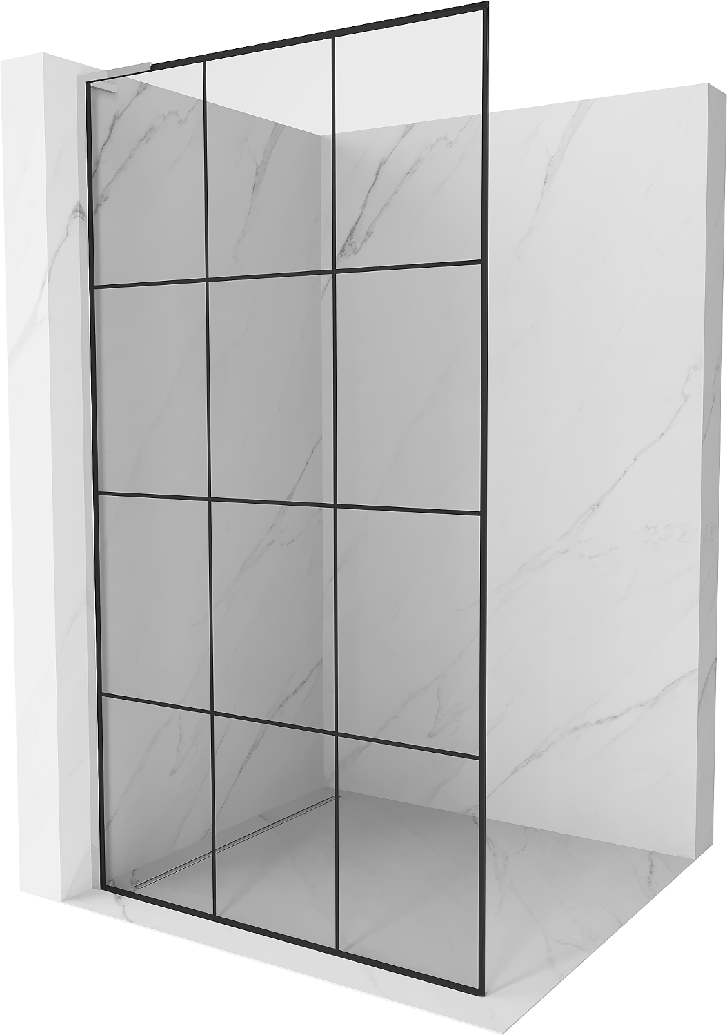 Mexen Kioto L Walk-in duschvägg 100 x 200 cm, svart rutnät, krom - 800-100-103-01-77
