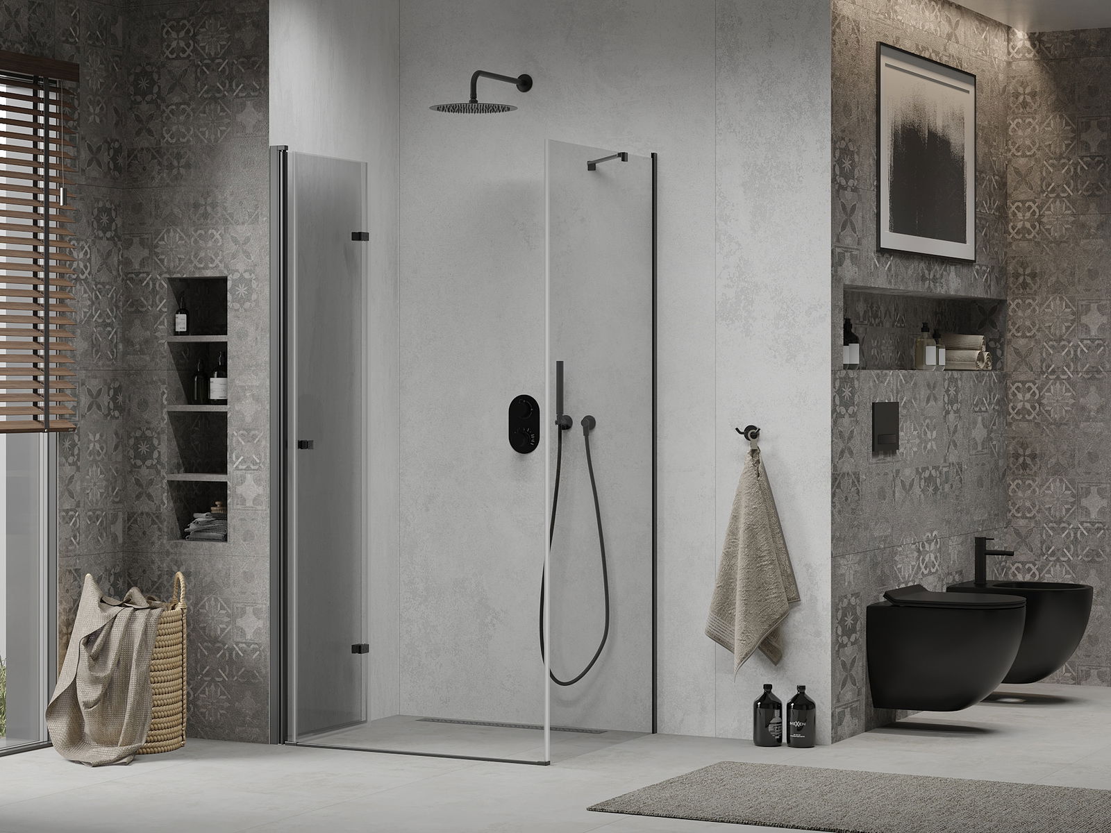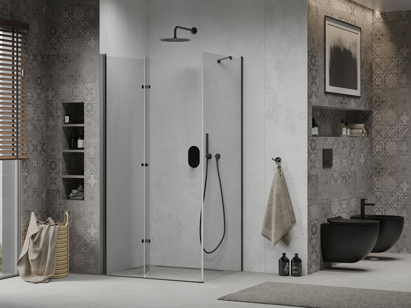Det praktiska och bekväma handtaget är tillverkat av hållbar och tålig metall. Den moderna formen i kombination med en finish som matchar profilernas färg ger helheten ett modernt och stilfullt utseende, samtidigt som det framhäver estetiken i varje badrum.