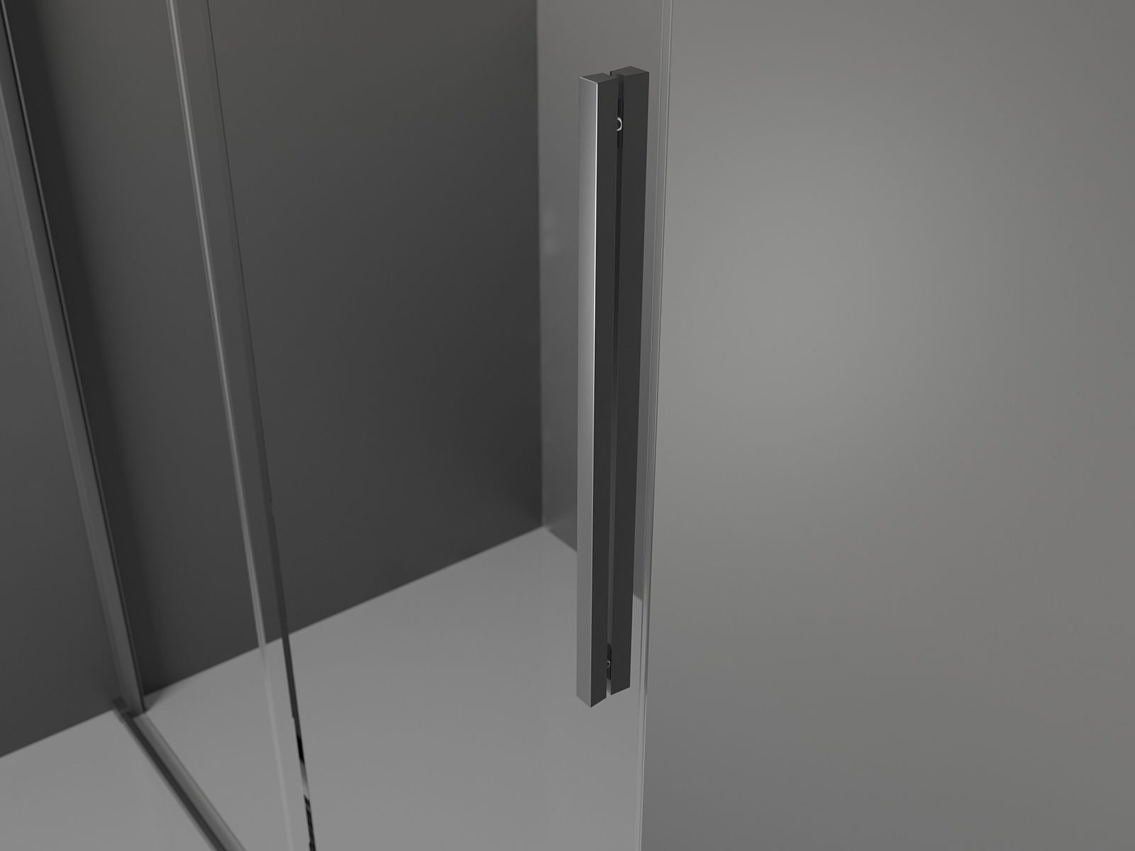 Det praktiska och bekväma handtaget är tillverkat av rostfritt stål. Den moderna formen i kombination med en finish som matchar profilernas färg ger helheten ett modernt och stiligt utseende, vilket framhäver estetiken i varje badrum.