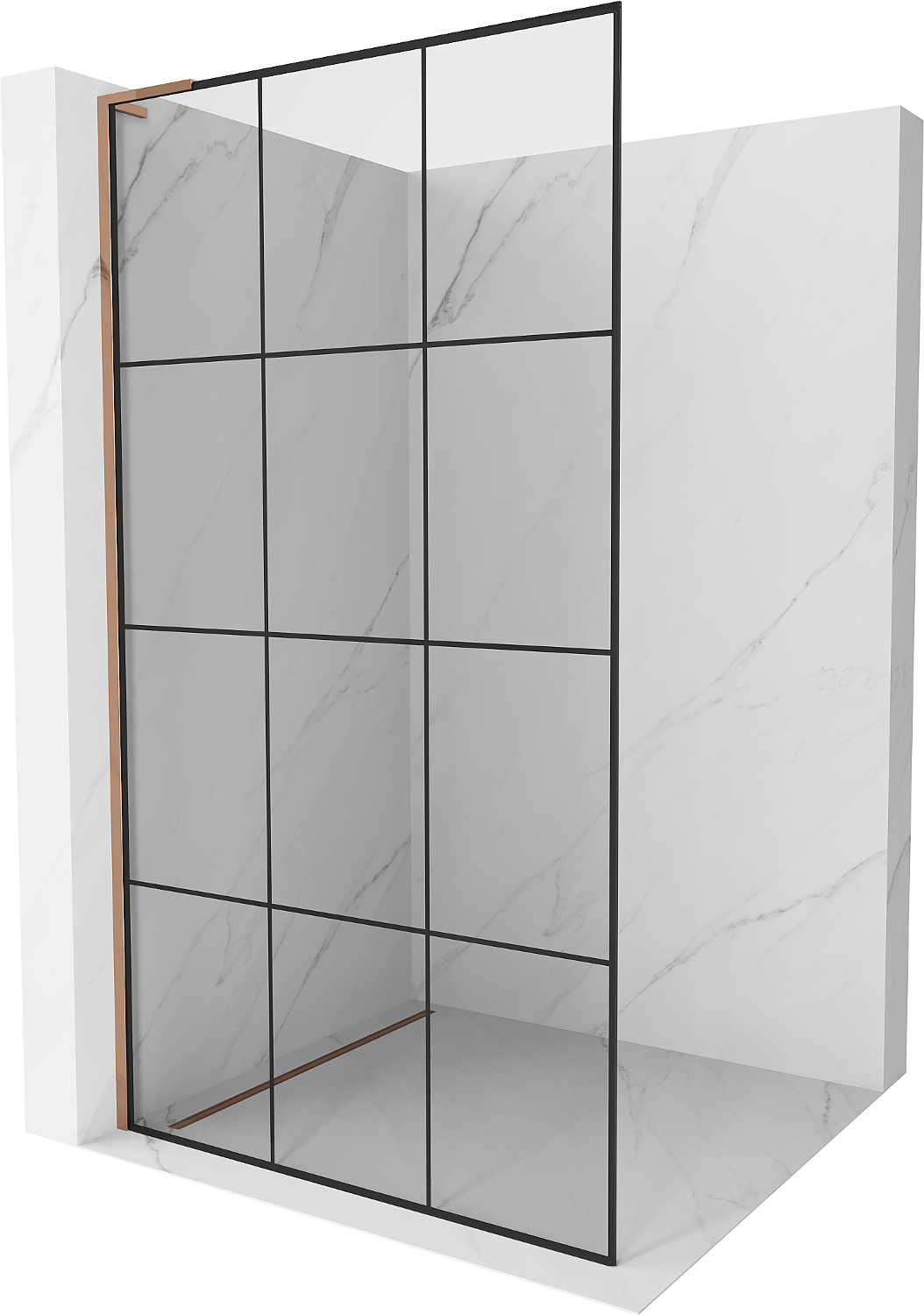Mexen Kioto L duschvägg Walk-in 120 x 200 cm, svart rutnät, rosa guld - 800-120-103-60-77