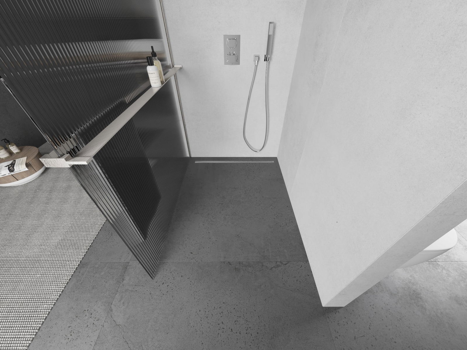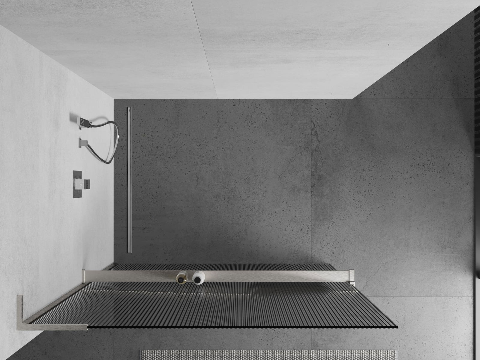 Mexen Kioto+ L Duschvägg med hylla Walk-in 110 x 200 cm, ränder, borstad nickel - 800-110-123-97-09