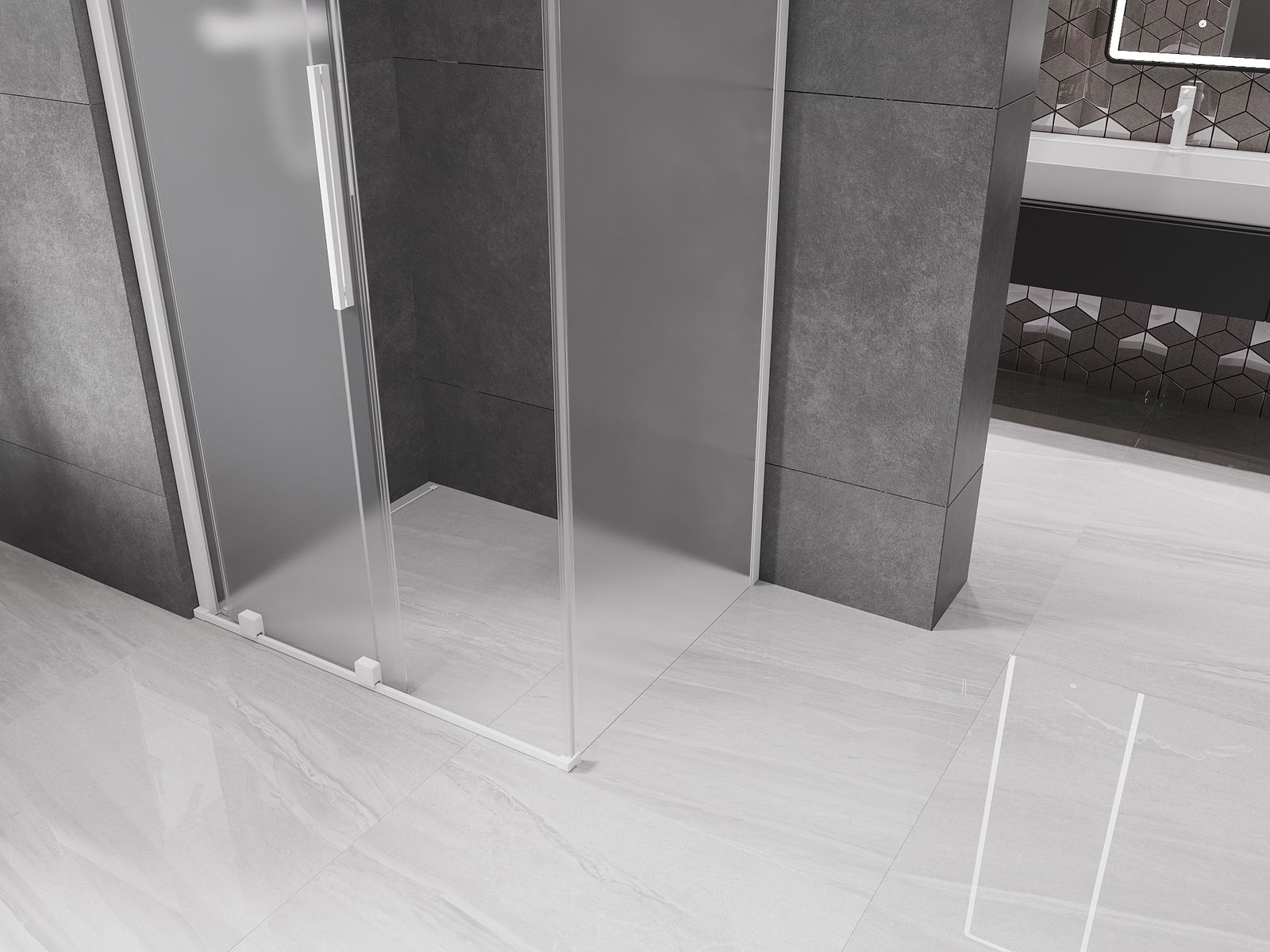 Mexen Velar skjutbar duschkabin 140 x 100 cm, frost, vit - 871-140-100-31-20