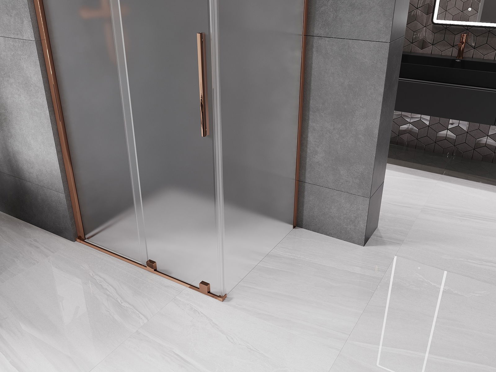 Mexen Velar skjutbar duschkabin 90 x 70 cm, frost, roséguld - 871-090-070-31-60
