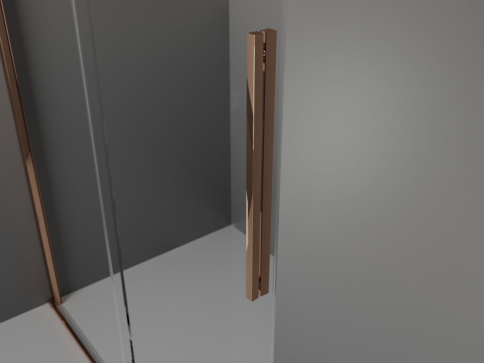 Det praktiska och bekväma handtaget är tillverkat av rostfritt stål. Den moderna formen i kombination med en finish som matchar profilernas färg ger helheten ett modernt och stiligt utseende, vilket framhäver estetiken i varje badrum.