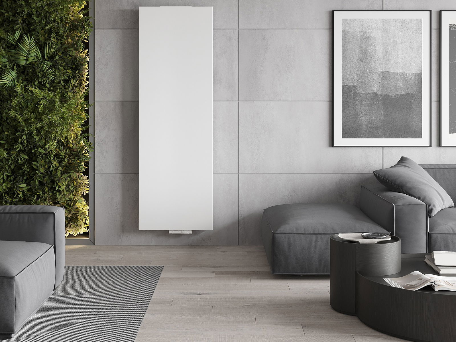 Bilderna visar radiatorn i storlek 600 x 1800 mm.