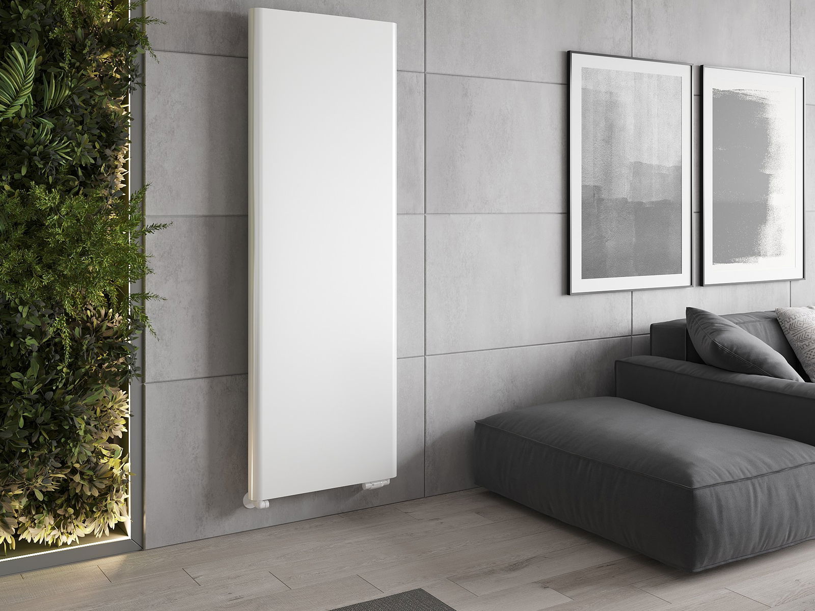 Bilderna visar radiatorn i storlek 600 x 1800 mm.