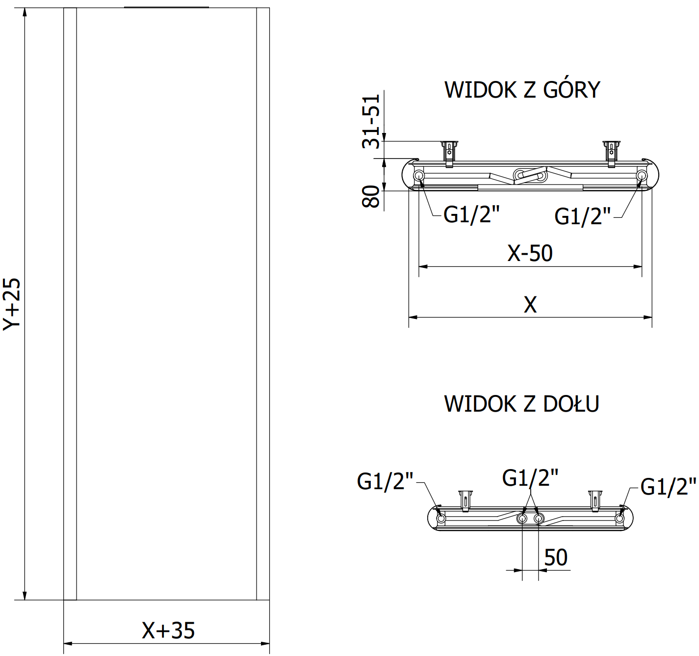 - 2xG ½″ nedre mitt
