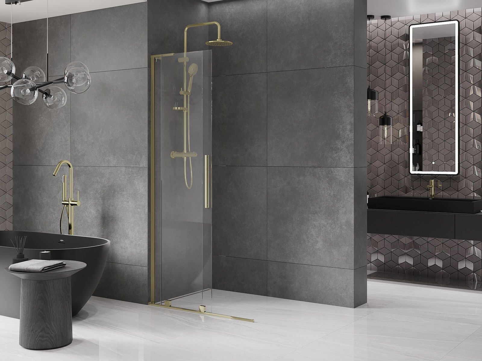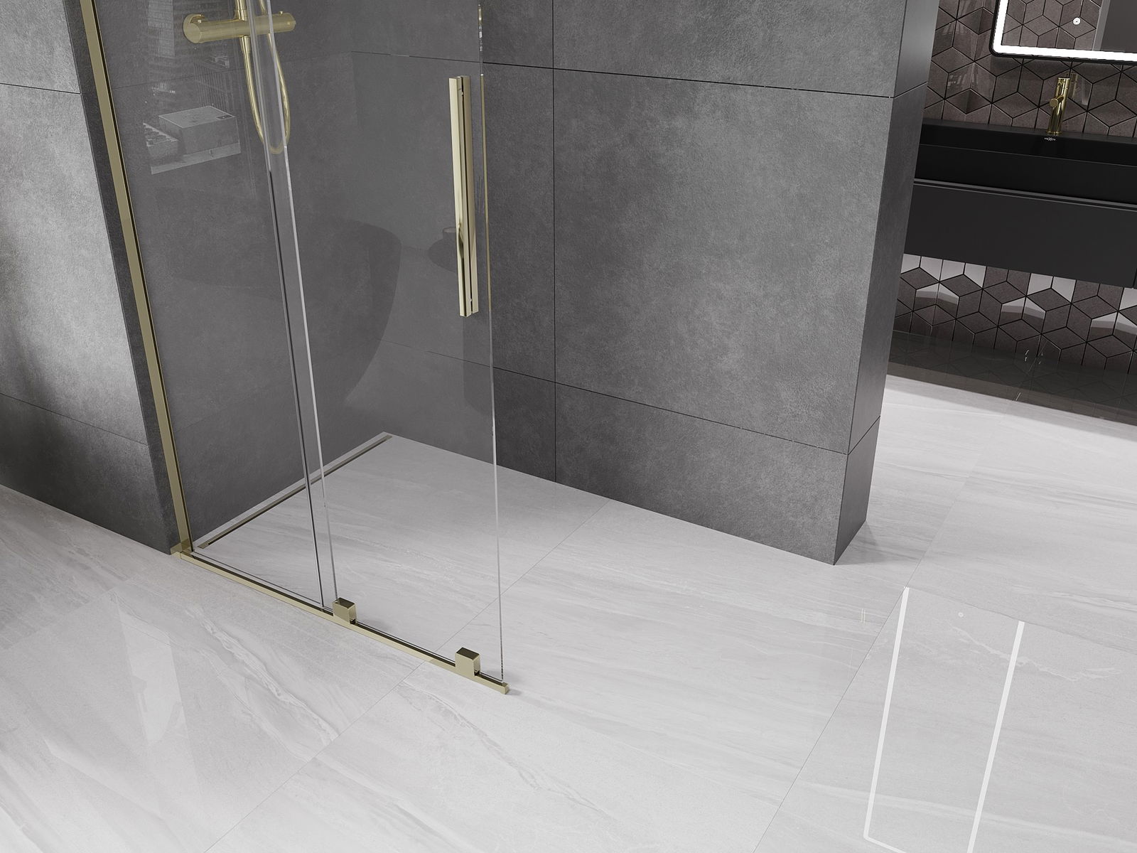 Mexen Velar L Skjutbar duschvägg Walk-in 100 x 200 cm, transparent 8 mm, guld - 871-100-003-03-50