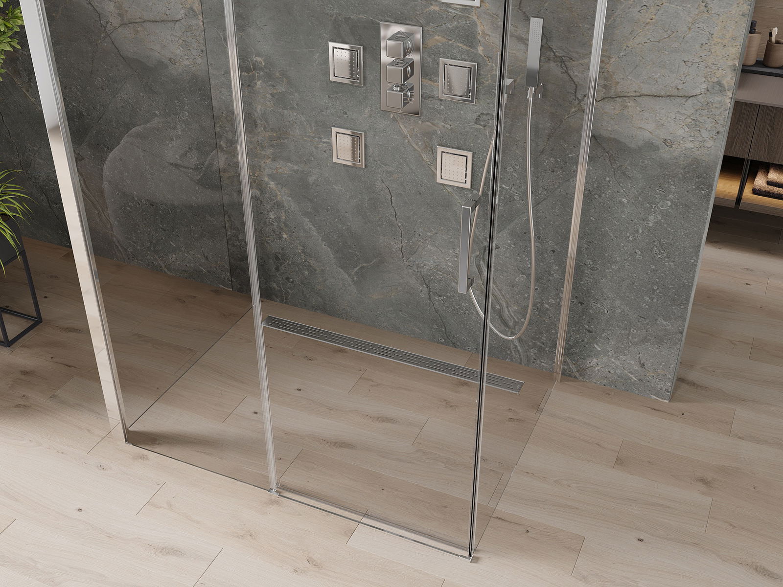 Tack vare användningen av ett universellt monteringssystem kan duschdörrarna monteras på höger eller vänster sida, beroende på behov. Detta gör att du enkelt kan designa en dusch som passar ditt badrums utrymme.