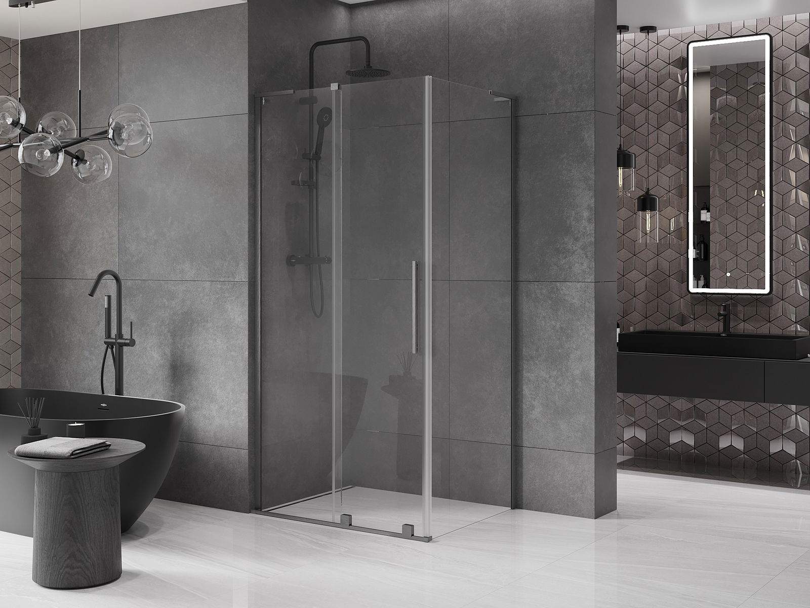 Mexen Velar L skjutbar duschkabin 120 x 85 cm, transparent, borstad mörk grå - 871-120-085-03-66