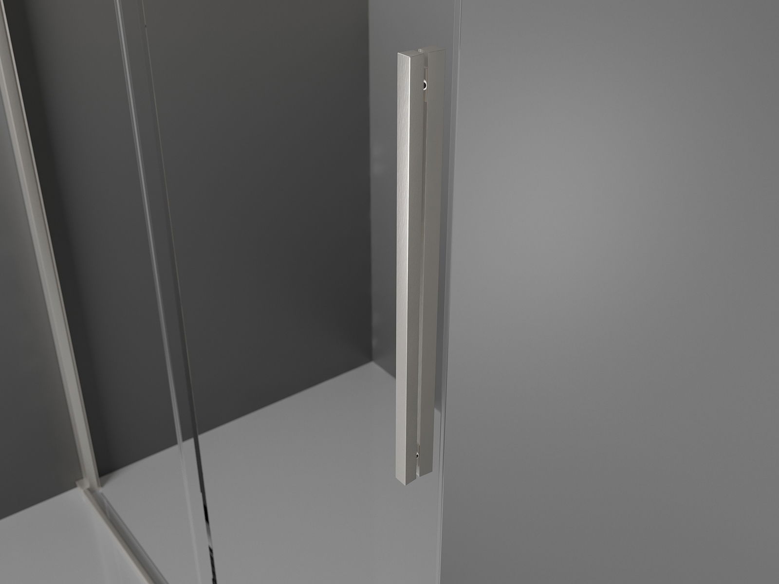 Det praktiska och bekväma handtaget är tillverkat av rostfritt stål. Den moderna formen i kombination med en finish som matchar profilernas färg ger helheten ett modernt och stiligt utseende, vilket framhäver estetiken i varje badrum.