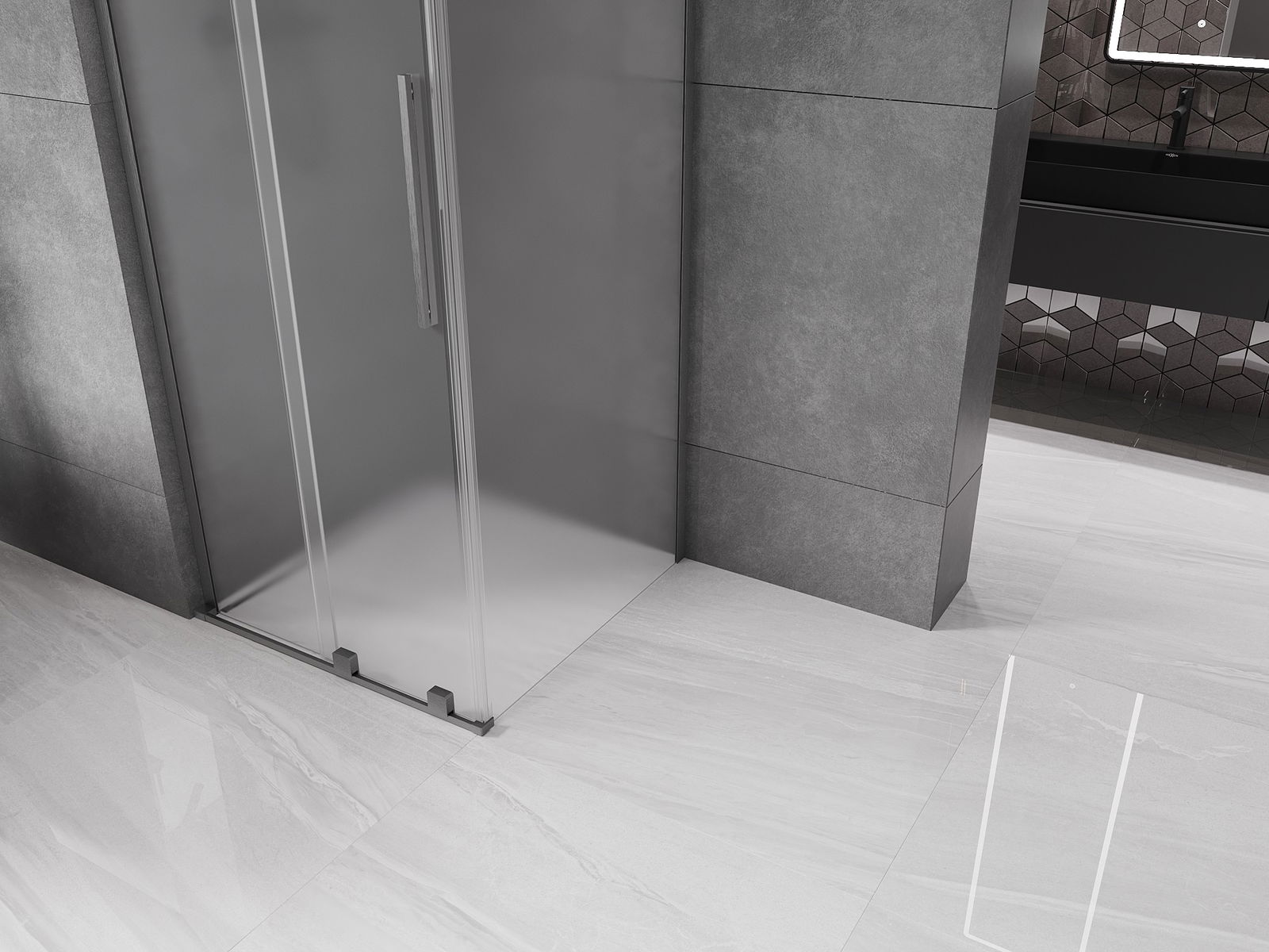 Mexen Velar L skjutbar duschkabin 100 x 100 cm, frost, borstad gun gray - 871-100-100-33-66