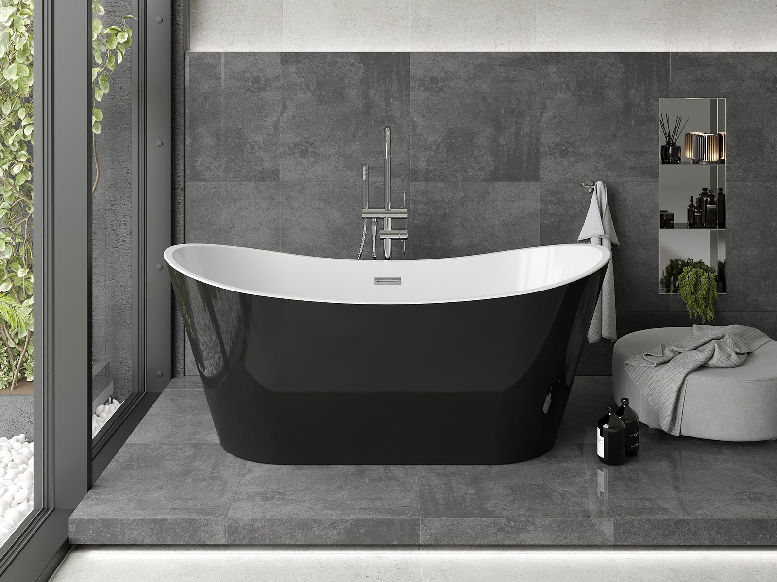 Mexen Montana fristående badkar 170 x 80 cm, vit/svart, kromöverflöde - 52011708075-01